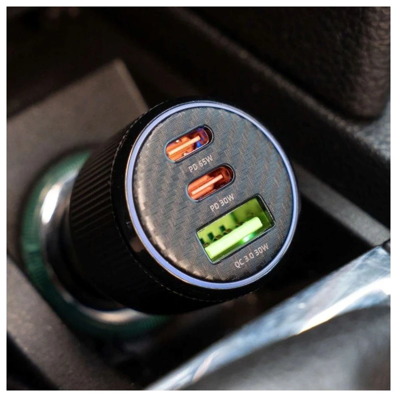 Swissten profesjonalna ładowarka samochodowa z obsługą PD 3.0 i QC 4.0 oferuje całkowitą moc do 95 W, dzięki czemu może zasilać nawet wydajne laptopy podczas jazdy. Główny port USB-C1 zapewnia moc do 65 W, idealny do ładowania laptopów takich jak Apple MacBook czy Dell XPS. Drugi port USB-C i port USB-A umożliwiają szybkie ładowanie innych urządzeń – telefonu, tabletu czy powerbanku – bez utraty mocy.