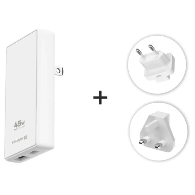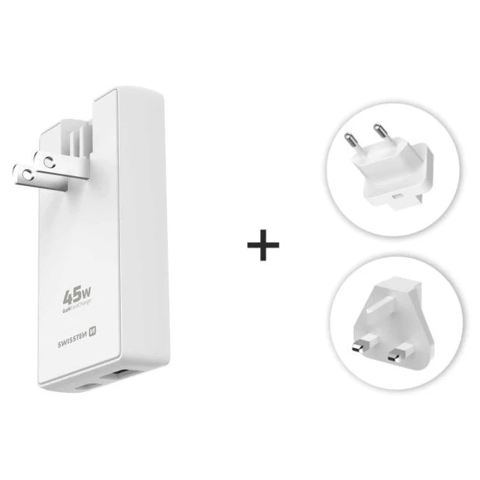 Swissten GaN USB-C + USB-A 45W to idealny wybór do ładowania wszystkich Twoich urządzeń na całym świecie. Dzięki wymiennym wtyczkom (A, B, C, E, G) wykorzystasz go w Europie, Ameryce, Azji i Australii.