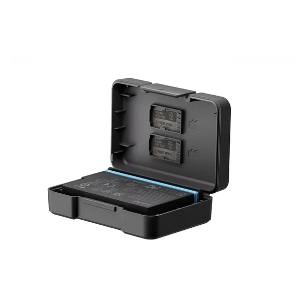W zestawie znajduje się etui ochronne, które nie tylko chroni akumulator podczas transportu, ale także zawiera dwa gniazda na karty pamięci, dzięki czemu wszystkie niezbędne akcesoria masz w jednym miejscu.