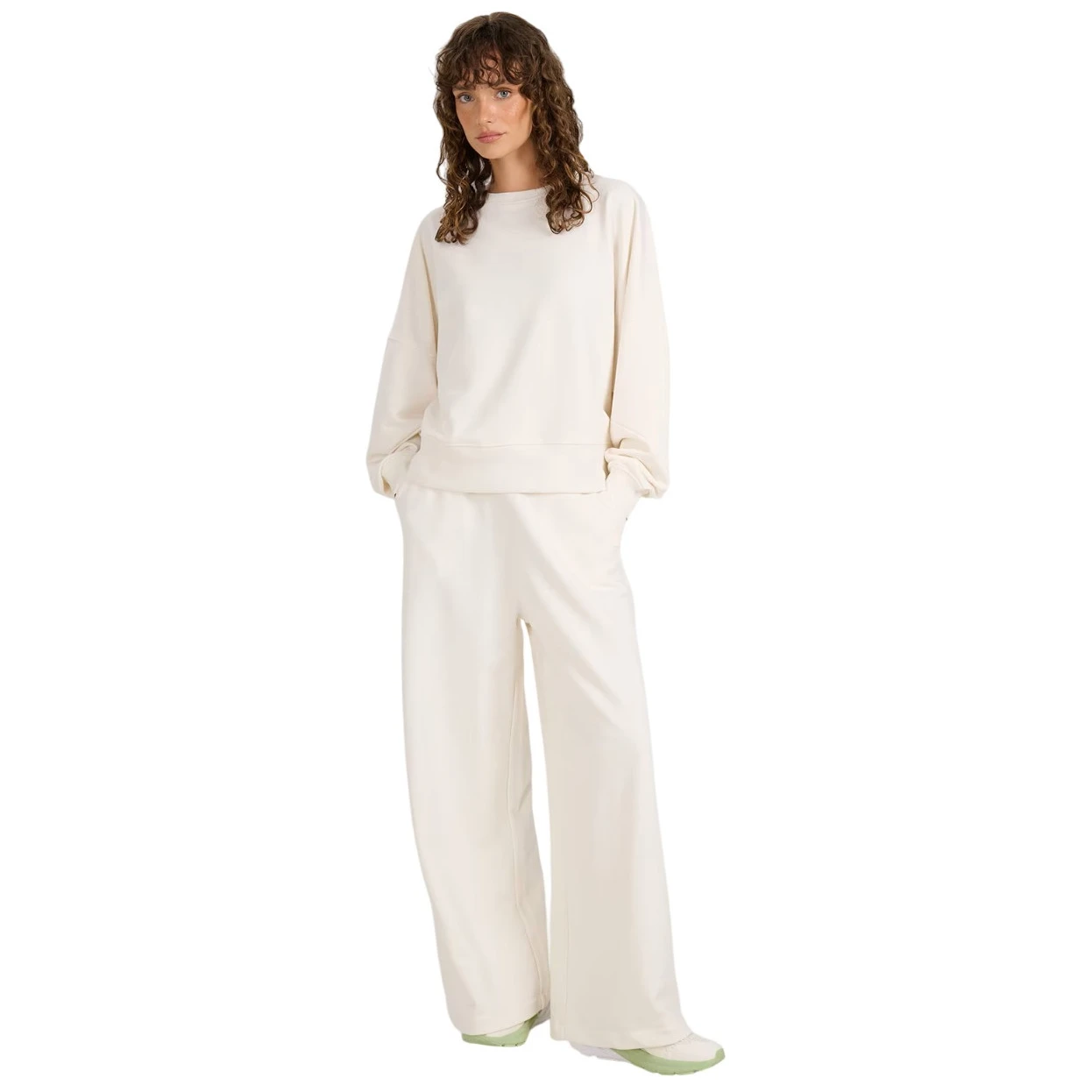 Dzianina typu french terry jest gładka z zewnątrz, a wewnątrz ma pętelkową strukturę, dzięki czemu bluza jest przyjemna w dotyku i bardziej oddychająca. Model ma okrągły dekolt ze ściągaczem, elastyczne mankiety i dolny ściągacz, co utrzymuje kształt nawet przy częstym noszeniu. Bluza zakładana przez głowę i bez kieszeni, co podkreśla jej minimalistyczny wygląd.