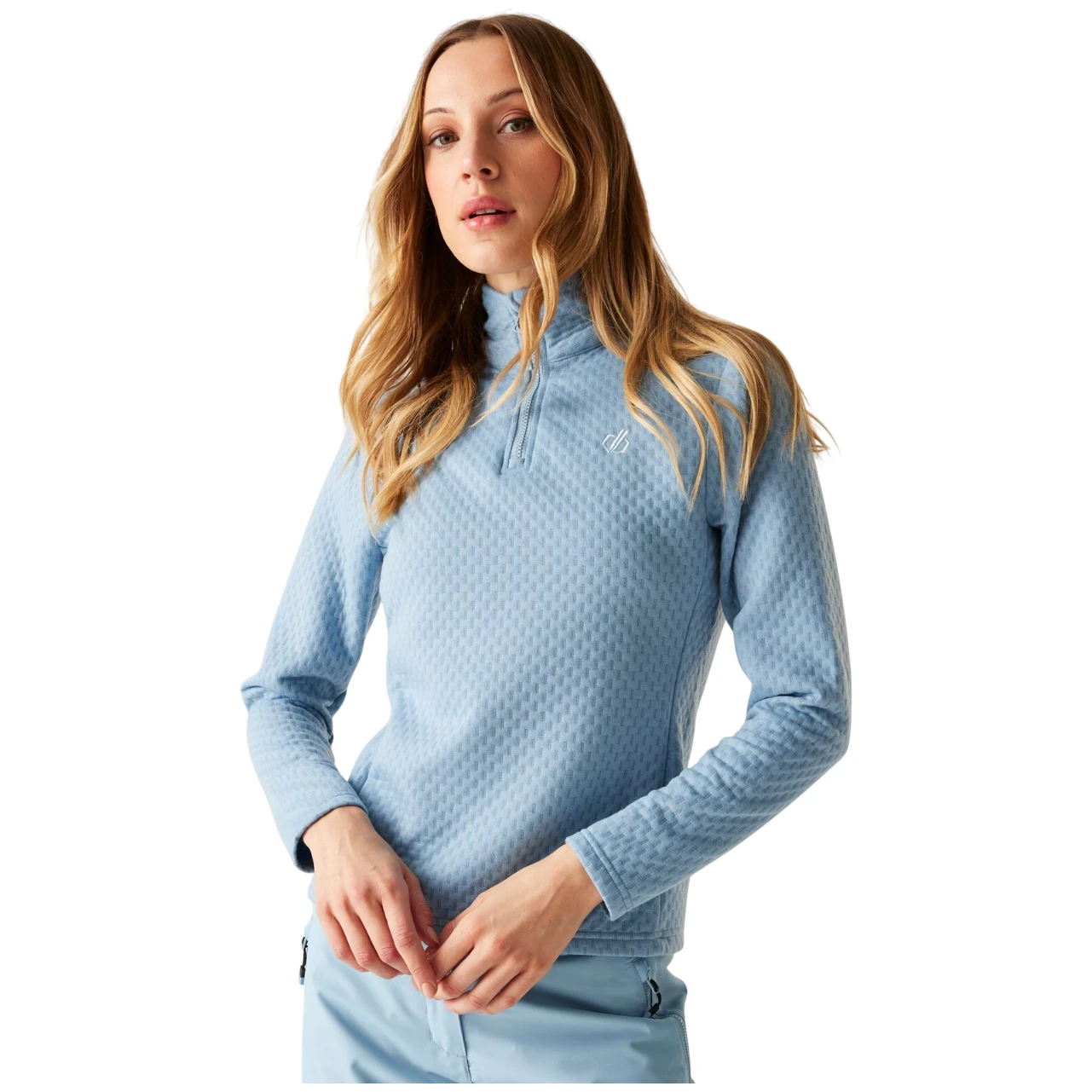 Bluza damska Blindside Midlayer Dare 2b to idealna warstwa środkowa na chłodne dni do miasta i na wszelkie aktywności na świeżym powietrzu. Wykonana z recyklingowanego polaru z Ilus Stretch, zapewnia ciepło, oddychalność i elastyczne, dopasowane dopasowanie. Zamek błyskawiczny 1/4 ułatwia warstwowanie i regulację temperatury podczas aktywności na świeżym powietrzu.