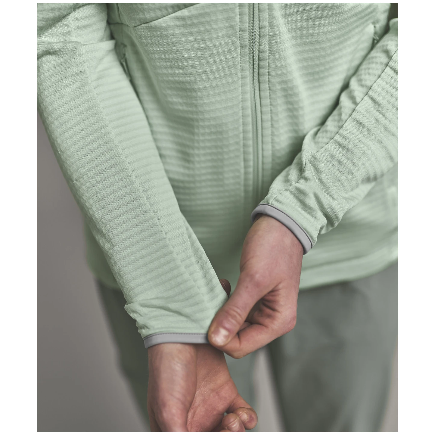 Wyjątkowym elementem tej bluzy jest jej wewnętrzna, waflowa struktura. Te drobne, siateczkowe komory świetnie izolują, ponieważ zatrzymują ogrzane powietrze, a jednocześnie pozwalają nadmiarowi ciepła i potu szybko uchodzić na zewnątrz. Dzięki temu ta polarowabluza bardzo szybko schnie, co docenisz podczas intensywnego wysiłku, gdy podczas wspinaczki solidnie się spocisz.