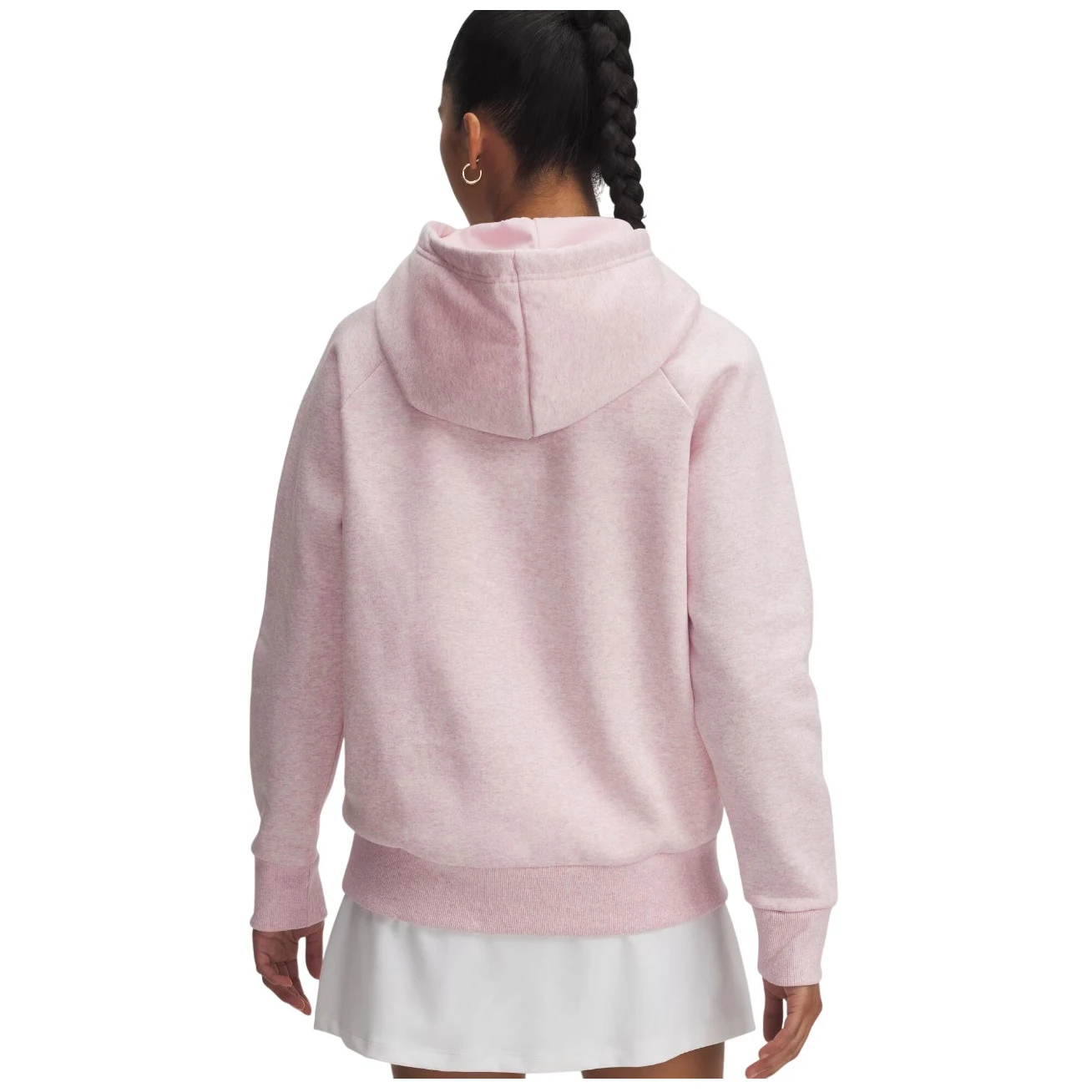 Bluza damska Under Armour Bluza Rival Fleece Hoodie jest wykonana z miękkiego polaru z dodatkiem bawełny. Materiał ten jest bardzo wygodny w noszeniu. Bluza ma kieszeń kangurkę i kaptur ze sznurkiem ściągającym. Dół i mankiety wykonane są z elastycznego materiału w prążki.