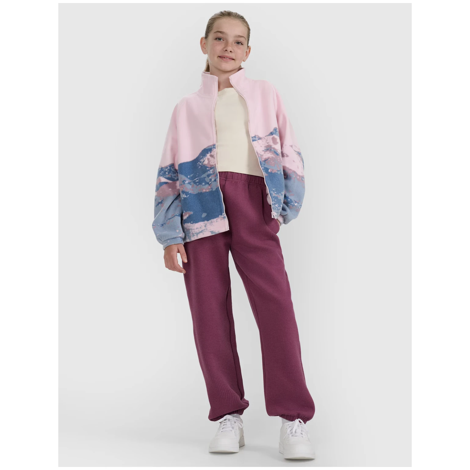 Dziewczęcy polar oversize 4F z kołnierzem oferuje wygodny styl, miękki materiał polarowy i wyrazistą kolorystykę na czas wolny i dni szkolne.