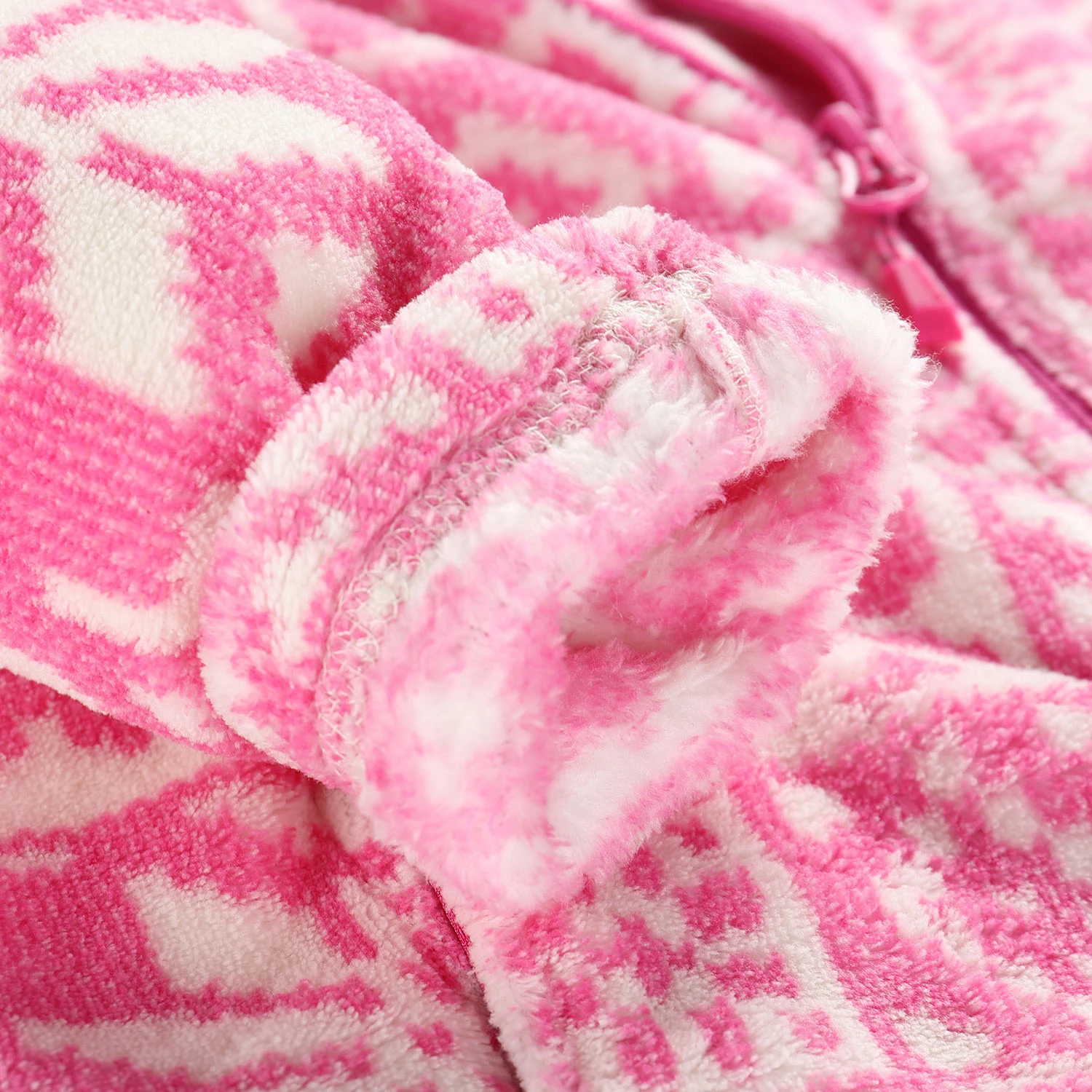 Bluza ma półprzylegający krój Regular Fit, który dopasowuje się do dziecięcej sylwetki i umożliwia swobodny ruch podczas różnych aktywności. Długi, kontrastowy zamek błyskawiczny i stójka zapewniają zmienność wentylacji i ochronę przed zimnem. Nadrukowany wzór na całej powierzchni, stylowa naszywka na przedniej części i nowoczesna kolorystyka nadają bluzie atrakcyjny wygląd, dzięki czemu nadaje się nie tylko na wędrówki czy pobyt na łonie natury, ale także do miejskich stylizacji.