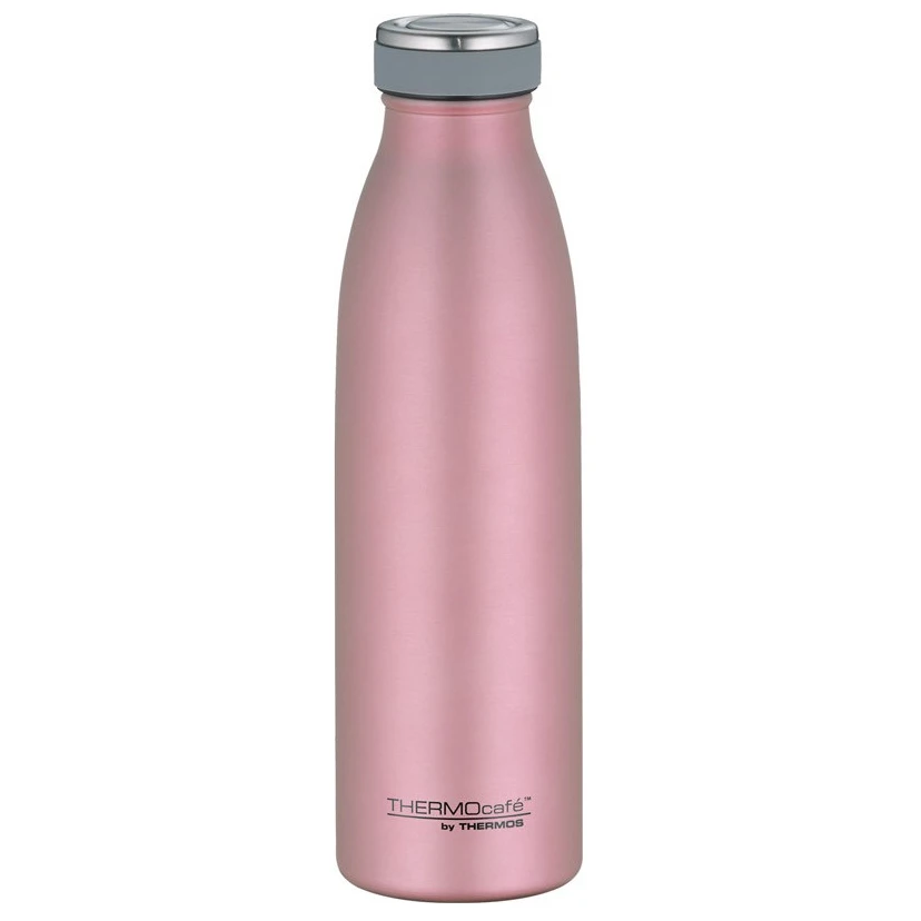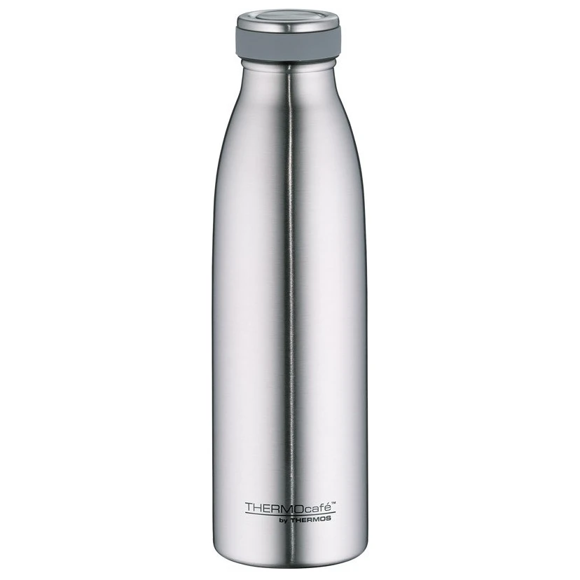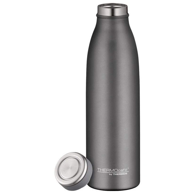 Thermos Thermocafé 500 ml to termos ze stali nierdzewnej z dwuścienną izolacją próżniową, zaprojektowany do codziennego użytku w domu i w podróży. Większa pojemność zapewni wystarczającą ilość napoju na dłuższe podróże, dzień pracy i wycieczki do natury, a wąski otwór umożliwia wygodne picie bezpośrednio z butelki bez konieczności używania kubka.