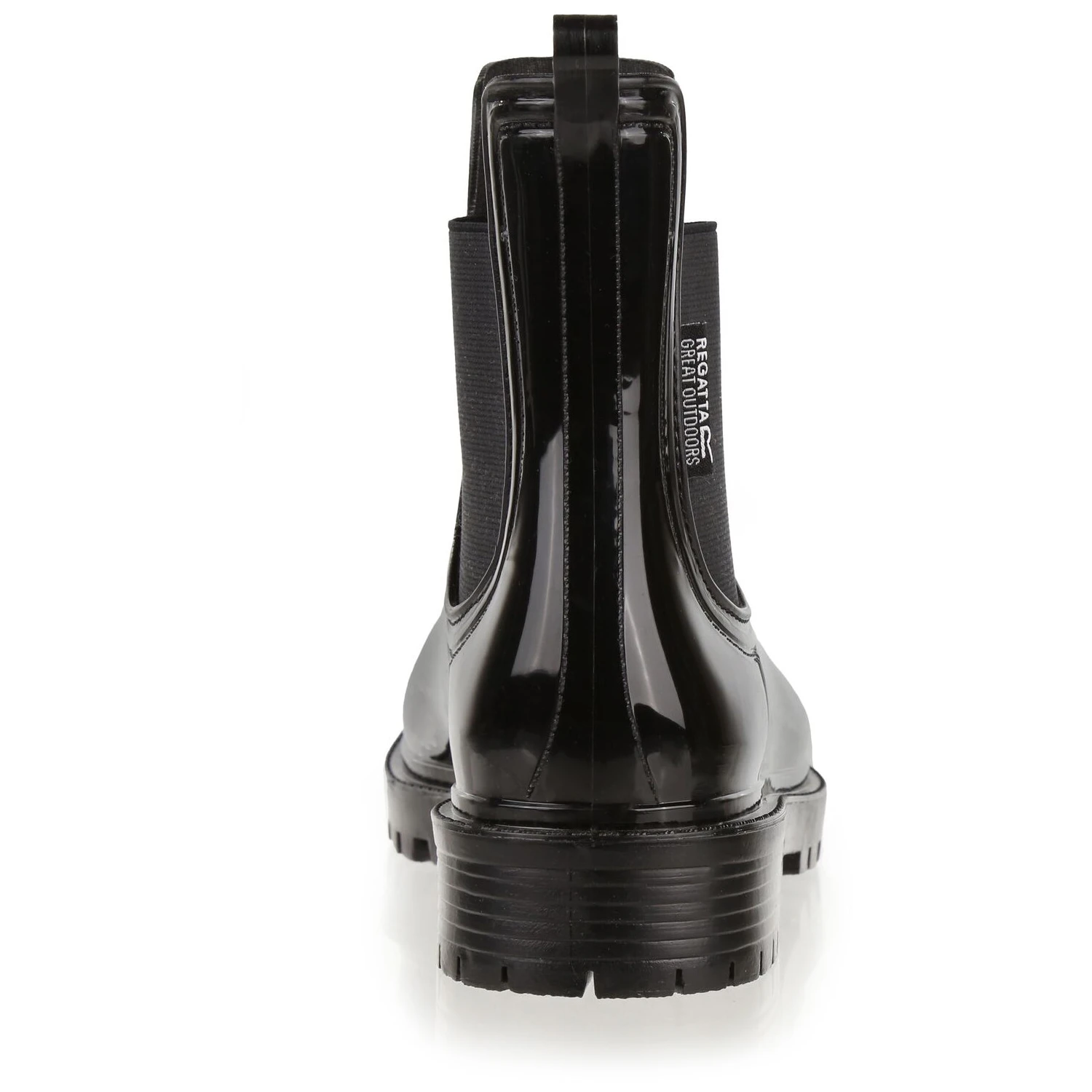 Kalosze damskie Womens Harriett II marki Regatta są wykonane z nieprzemakalnej i wytrzymałej gumy, co zapewnia długą żywotność. Buty mają miękką bawełnianą wyściółkę i otwartą piankową wkładkę TECFOAM, która zapewnia doskonały komfort pod stopami.
