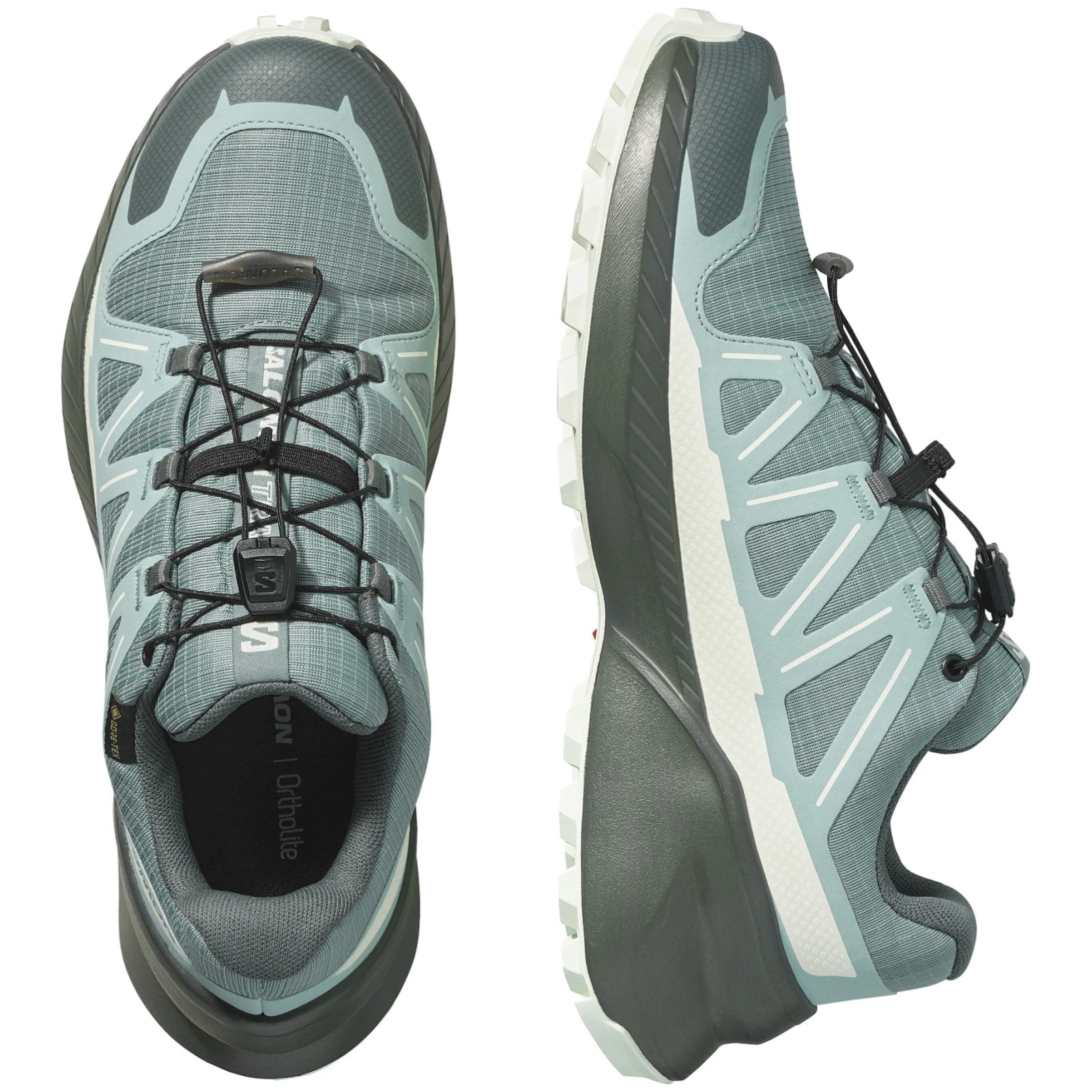 Dzięki membranie GORE-TEX stopy pozostają suche nawet w deszczu lub podczas brodzenia w kałużach. Podeszwa All Terrain Contagrip® z mocnym bieżnikiem w kształcie litery V zapewnia pewność na różnych powierzchniach – od błota po kamieniste szlaki. Podeszwa środkowa z pianki Fuze Foam dobrze amortyzuje wstrząsy, a konstrukcja sensiFIT™ stabilnie utrzymuje stopę nawet w nierównym terenie. Buty łatwo i szybko się zaciskają dzięki systemowi Quicklace™, co docenisz szczególnie w terenie lub podczas biegu.