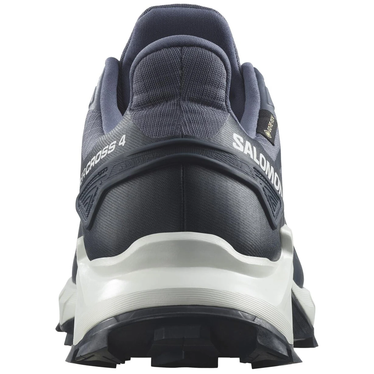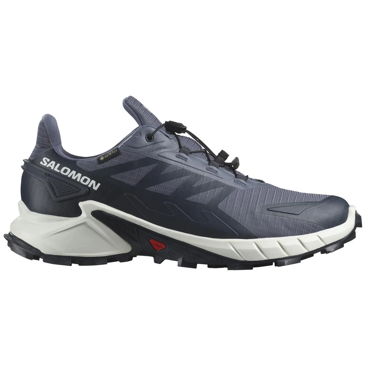 Męskie buty do biegania Supercross 4 Gore-Tex marki Salomon łączą w sobie miękką wyściółkę, wygodne dopasowanie i maksymalny komfort. Mocne dopasowanie do stopy zapewnia technologia SensiFit™, która obejmuje stopę od podeszwy środkowej po sznurowadła, zapewniając bezpieczne dopasowanie podczas biegu. Wodoodporna membrana Gore-Tex zapewnia suchość stóp nawet w deszczową pogodę, a specjalna obróbka zapewnia dodatkową ochronę przed deszczem. Zgrzewana cholewka bez szwów wykonana jest z nylonowej tkaniny ripstop, która jest wysoce odporna na rozdarcia i ścieranie.