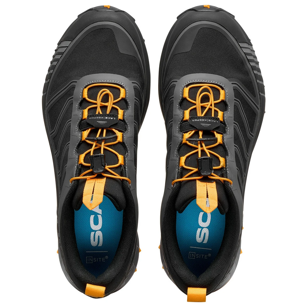Podstawą cholewki jest konstrukcja Sock-Fit LW, która charakteryzuje się lekką i super oddychającą siateczką z termoformowanymi wzmocnieniami, które gwarantują, że stopa jest mocno otulona, a jednocześnie zapewnia doskonały komfort i elastyczność w okolicy kostki, języka i przedniej części stopy. But dzięki temu świetnie leży, podtrzymuje i nigdzie nie uciska. Wewnątrz znajduje się wodoodporna, a jednocześnie oddychająca membrana GORE-TEX® Invisible Fit, dzięki czemu Twoje stopy zawsze pozostaną suche. Szybkie i łatwe zakładanie gwarantuje samozaciskowy system sznurowania Fast Lacing System, który umożliwia elastycznej sznurówce szybkie przesuwanie się i doskonałe zabezpieczenie stopy wewnątrz buta. Podeszwa środkowa z pianki EVA o średniej gęstości zapewnia lekką amortyzację i tłumienie wstrząsów. Podeszwa SCARPA PRESA® jest wykonana z wysokowydajnego materiału gumowego z 4mm dropem i 6 mm bieżnikiem oraz z doskonałą przyczepnością na suchej i mokrej nawierzchni.