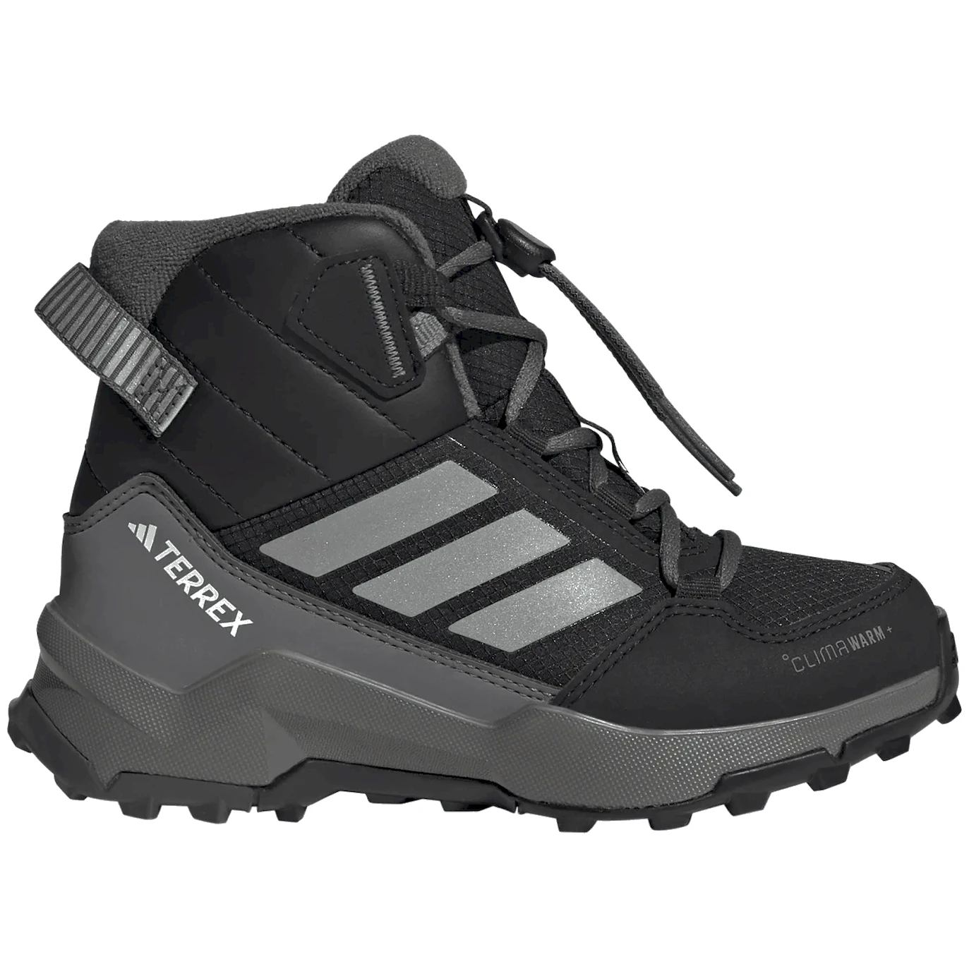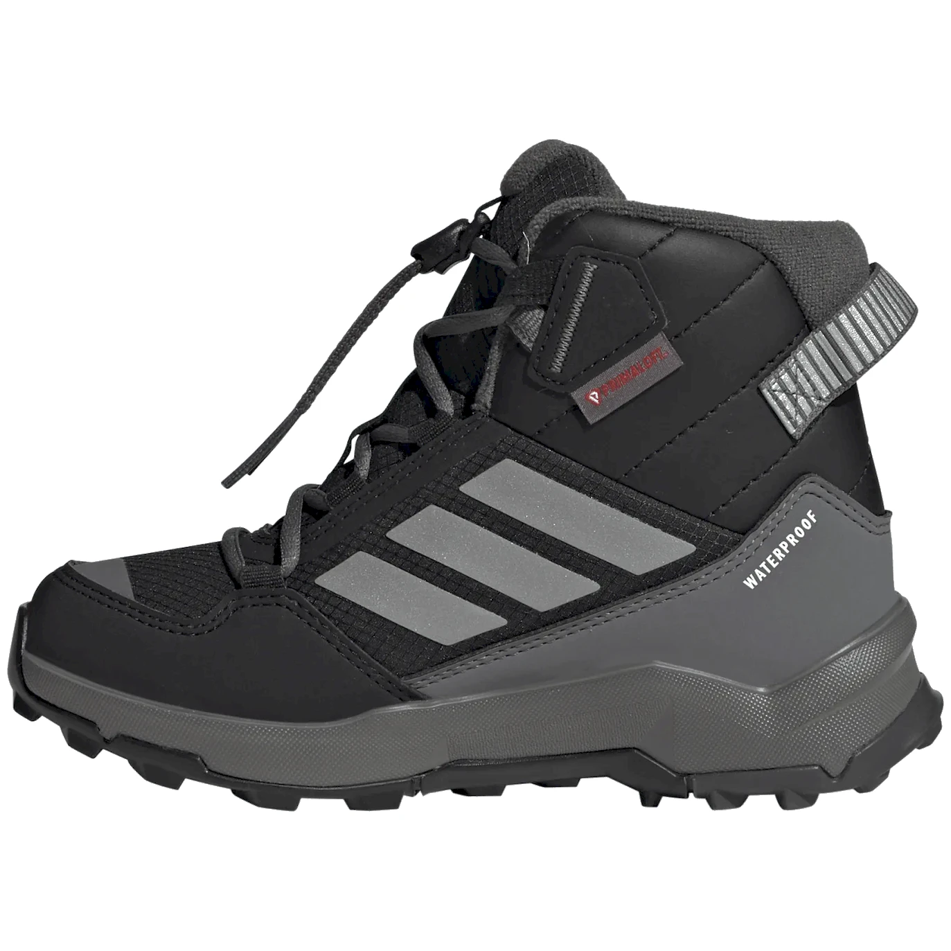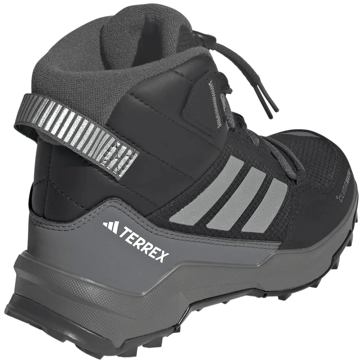 Buty dziecięce Terrex AX4R CW+ Mid K są ocieplane izolacją PrimaLoft® i wodoodporne, dzięki czemu mali wędrowcy pozostaną suchi i ciepli. Podeszwa Traxion zapewnia doskonałą przyczepność nawet na śliskiej nawierzchni, średniej wysokości krój dba o stabilność, a kryte szybkie sznurowanie umożliwia łatwe zakładanie bez żmudnego wiązania.