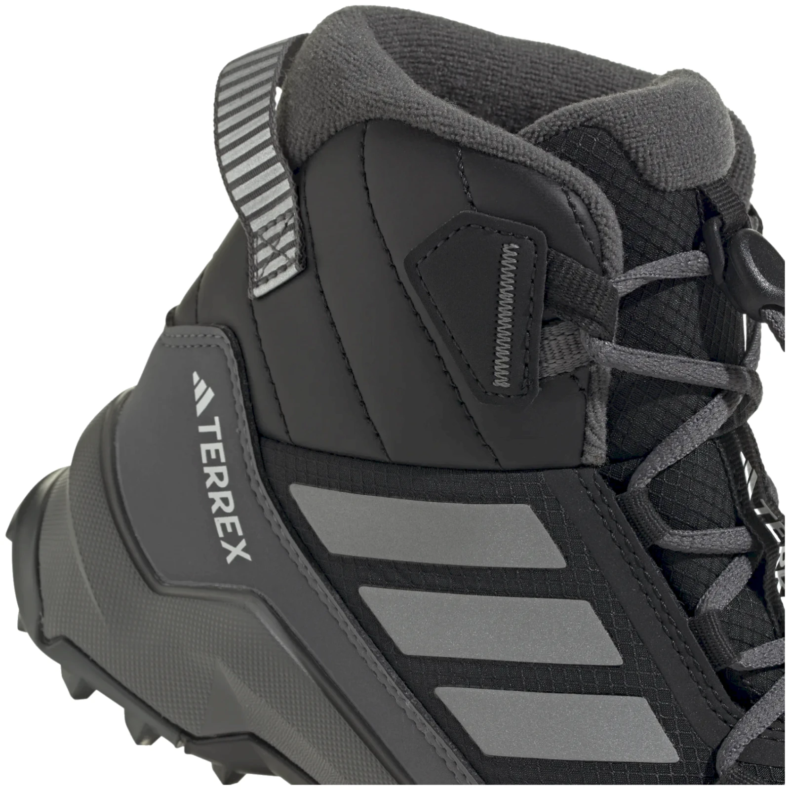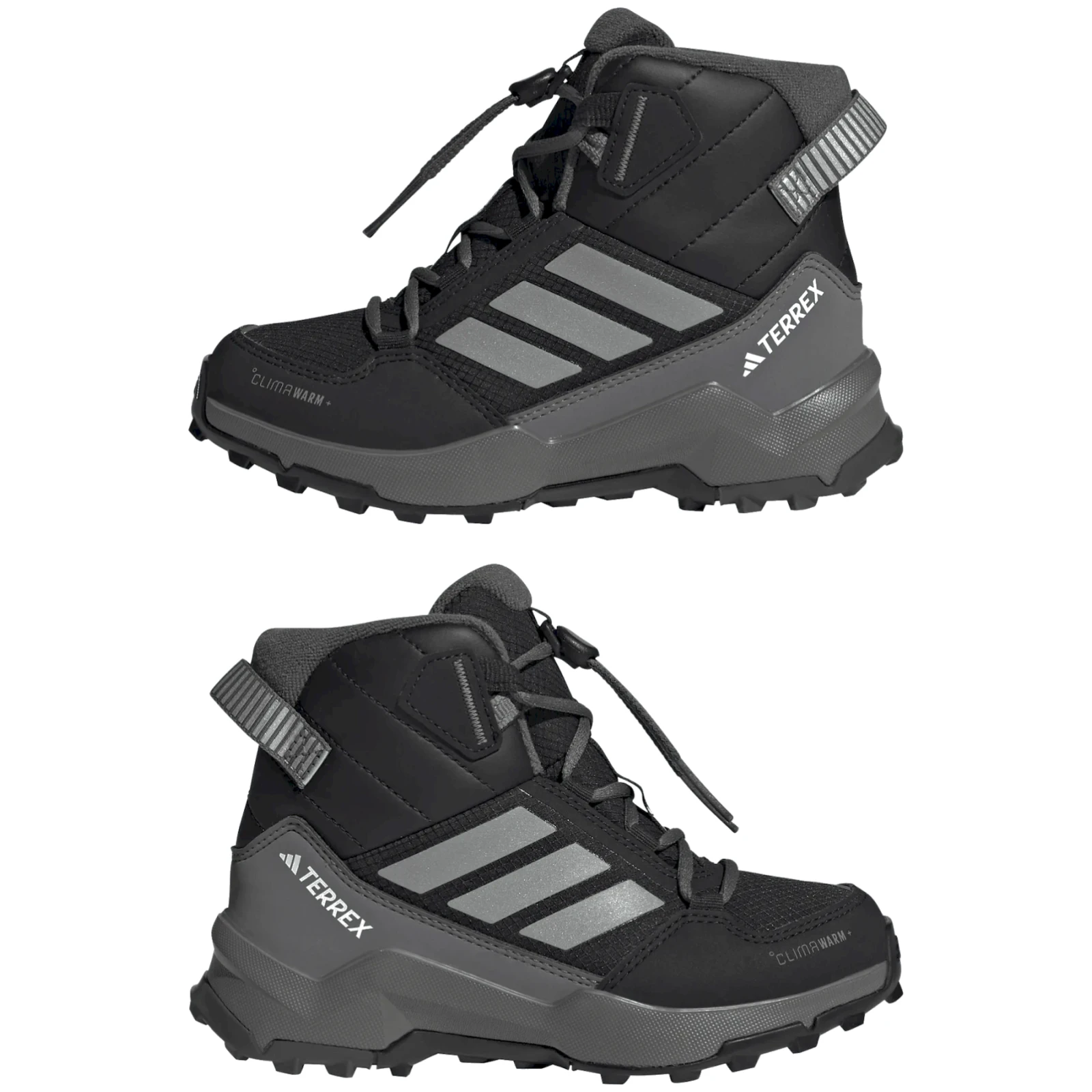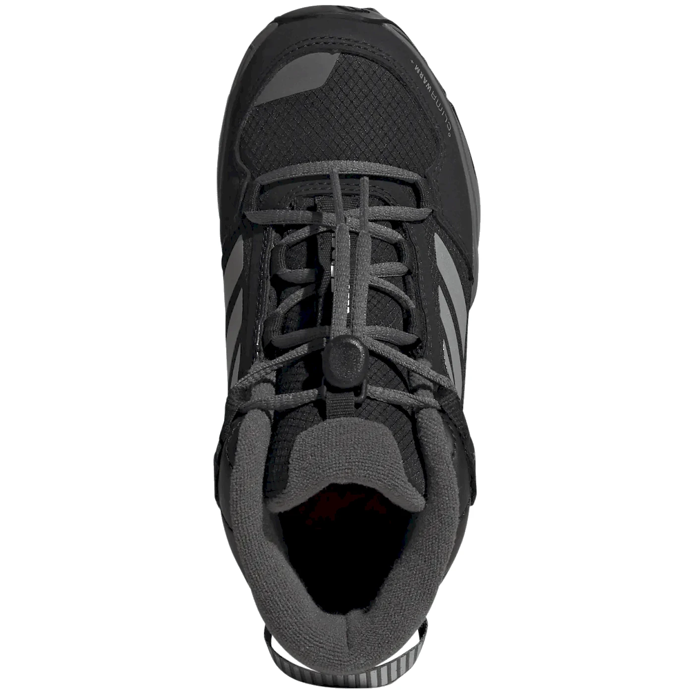 Buty dziecięce Terrex AX4R CW+ Mid K są ocieplane izolacją PrimaLoft® i wodoodporne, dzięki czemu mali wędrowcy pozostaną suchi i ciepli. Podeszwa Traxion zapewnia doskonałą przyczepność nawet na śliskiej nawierzchni, średniej wysokości krój dba o stabilność, a kryte szybkie sznurowanie umożliwia łatwe zakładanie bez żmudnego wiązania.