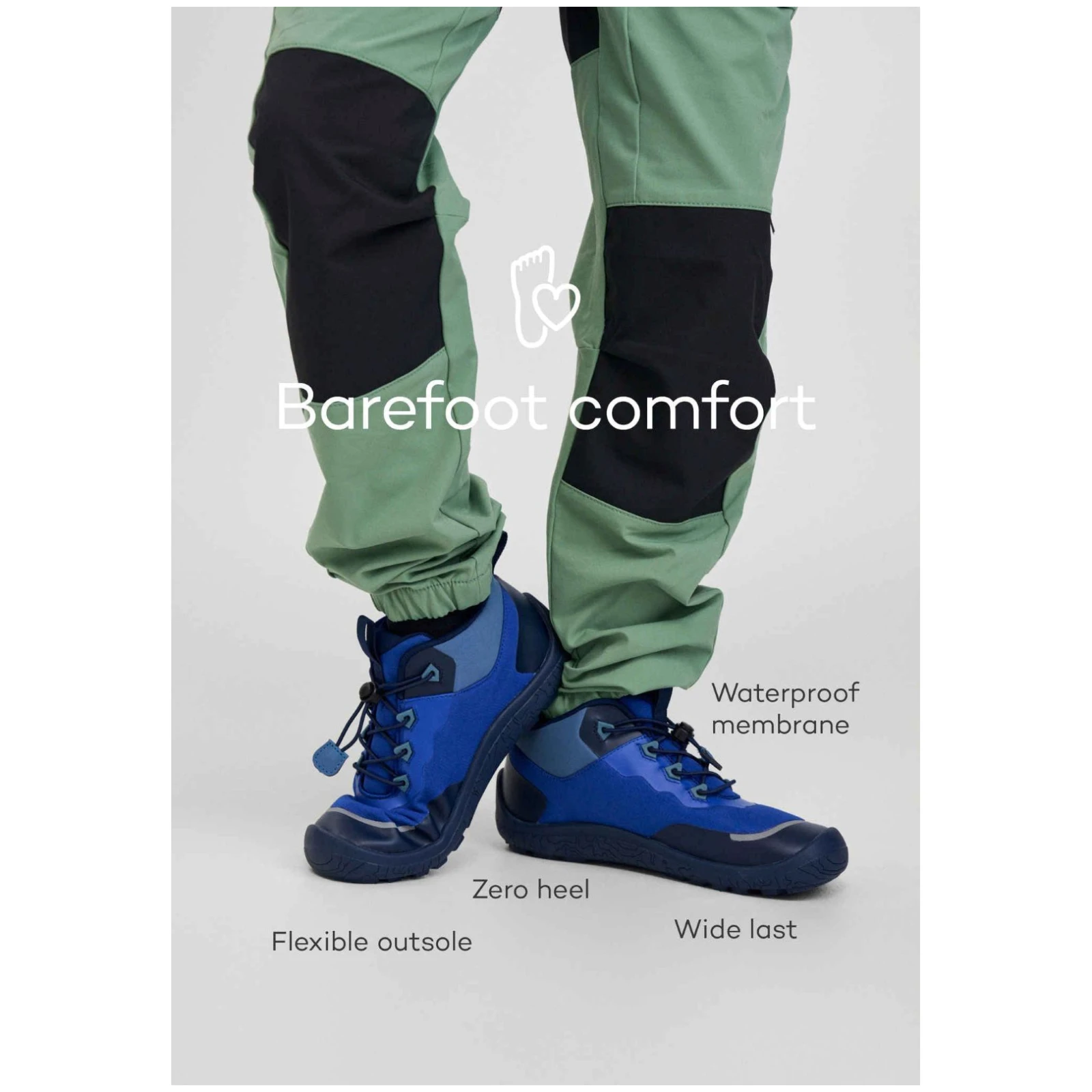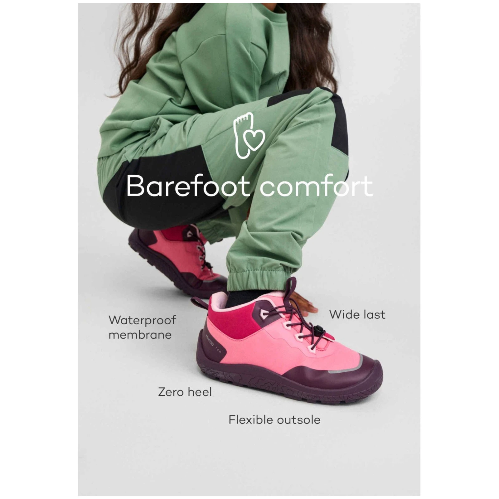 Buty barefoot dziecięce Sankari marki Reima ochronią Twoje dzieci nawet w zmiennych warunkach pogodowych. Buty są odporne na ograniczone ilości sporadycznej wilgoci, na przykład mokrą ziemię lub słaby deszcz. Umożliwiają naturalne ułożenie stóp Twojego dziecka z zerowym spadkiem pięty, a elastyczna podeszwa i szeroka przednia część zapewniają palcom wystarczająco dużo miejsca na swobodny ruch. Elastyczne sznurowanie ułatwia zakładanie, a wodoodporna membrana jest przydatna przy zmiennej pogodzie. Dzięki elementom odblaskowym dla zwiększenia widoczności i przyczepnej gumowej podeszwie dla doskonałej trakcji, buty te są idealne na każdą przygodę.