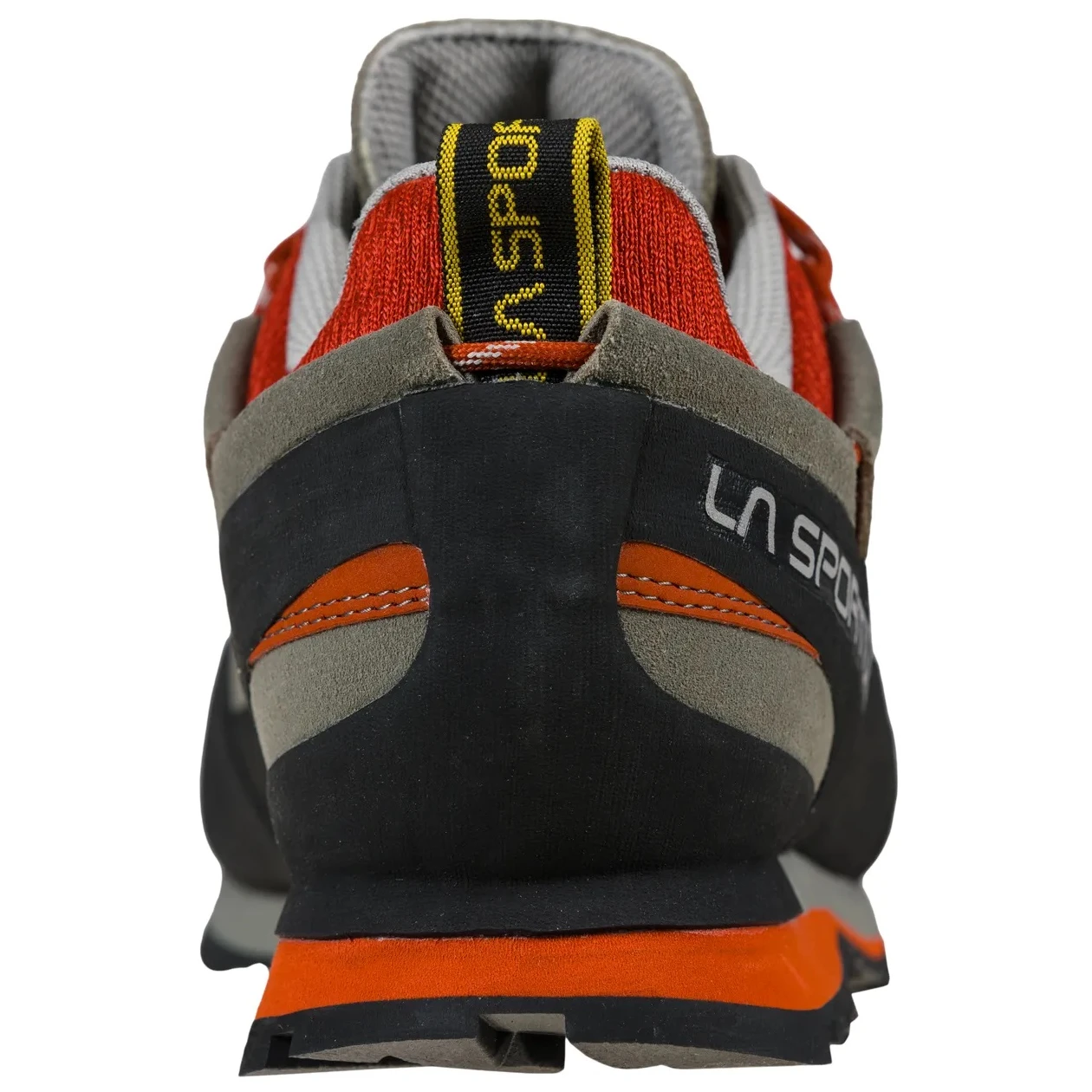 La Sportiva Boulder X to sprawdzone buty do jazdy na desce, odpowiednie do technicznego terenu i via ferrat. Tworzywo wykonane ze skóry welurowej zostaną docenione podczas wyjść w chłodne jesienne dni. Solidna gumowa wyściółka chroni buty przed kopaniem i ostrymi kamieniami. To, co czyni je idealnymi butami w skały, to podeszwa Vibram® z Impact Brake System®, która zapewnia doskonałą przyczepność w trudnym terenie oraz opatentowany system sznurowania Mythos, który pozwala szybko i łatwo dopasować stopę do potrzeb.