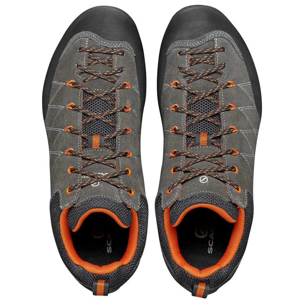Nie pozwól, aby ruch Cię ograniczał, gdziekolwiek jesteś. Podczas poruszania się w skałach lub w górach te buty trekkingowe utrzymują stabilny krok dzięki podeszwie zewnętrznej Vibram® Vertical Dual Density, która jest znacznie ulepszona dzięki zastosowaniu mieszanki Megagrip, zapewniając najlepszą przyczepność w każdych warunkach, od suchej skały po mokrą trawę. Bieżnik jest lekki, dzięki czemu nie tracisz energii, której potrzebujesz. Skórzane buty trekkingowe Scarpa Crux posiadają sznurowanie aż po sam palec, a pokrycie w okolicy palców i pięty dodatkowo zwiększa odporność na uszkodzenia mechaniczne.