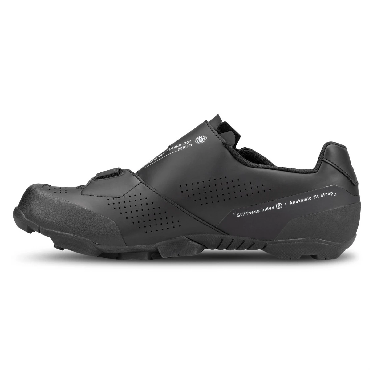 Indeks sztywności 8 zapewnia efektywne przenoszenie energii na pedały bez poświęcania poziomu komfortu. Wytrzymała podeszwa poradzi sobie również w trudniejszym terenie, co czyni te buty uniwersalnym partnerem na różne warunki.