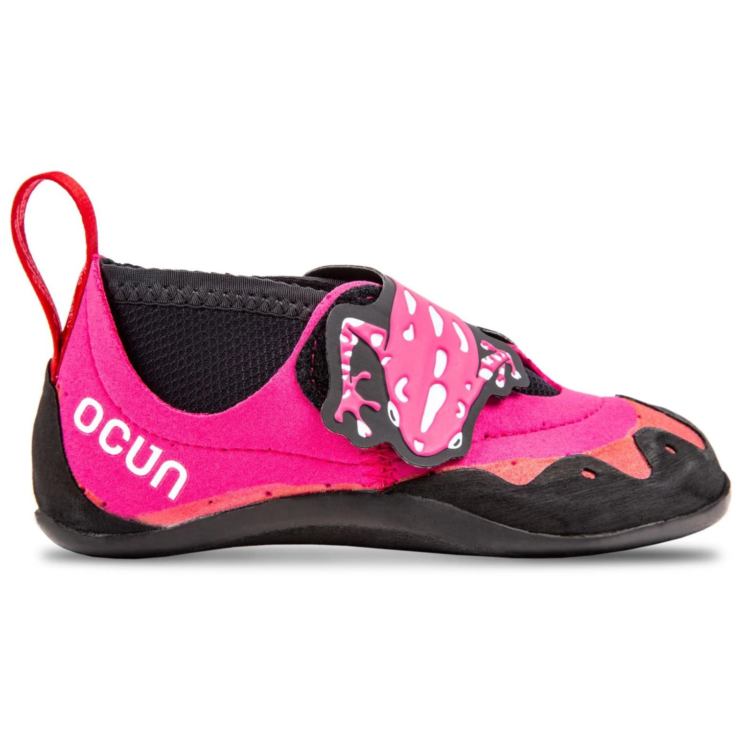 Trzymaj się jak żaba i nigdy nie wyrzucaj pleców. Doskonały komfort dla najmłodszych wspinaczy zapewniają buty wspinaczkowe Ribbit od Ocún. Dzieci docenią zarówno łatwość ich zakładania, jak i motyw żaby na zapięciu.