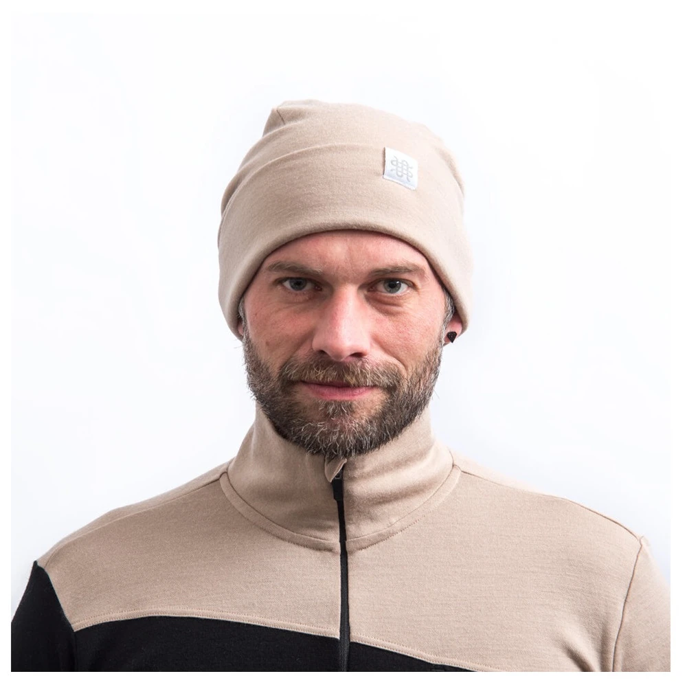 Wełna merino z Nowej Zelandii wyróżnia się doskonałymi właściwościami termoregulacyjnymi – utrzymuje głowę w idealnej temperaturze, a jednocześnie odprowadza nadmiar wilgoci. Dzięki zawartości lanoliny czapka ma właściwości antybakteryjne, co oznacza, że pozostaje świeża nawet po dłuższym użytkowaniu. Dodatek jedwabiu poliamidowego zapewnia wysoką elastyczność, wytrzymałość i stabilność kształtu.
