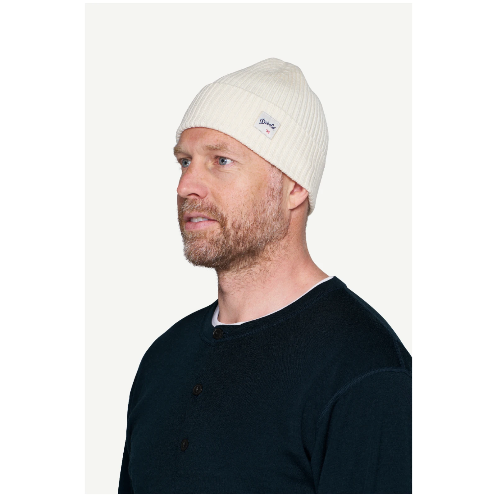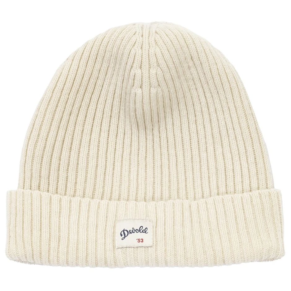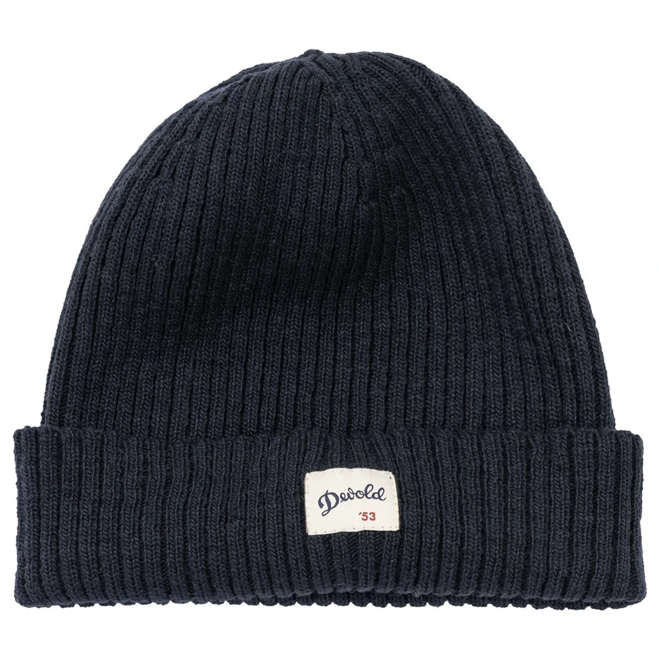 Stylowa zimowa czapka Devold Archive Wool Beanie z wełny merino z logo retro i bezszwową konstrukcją, inspirowana norweską tradycją marynarską.
