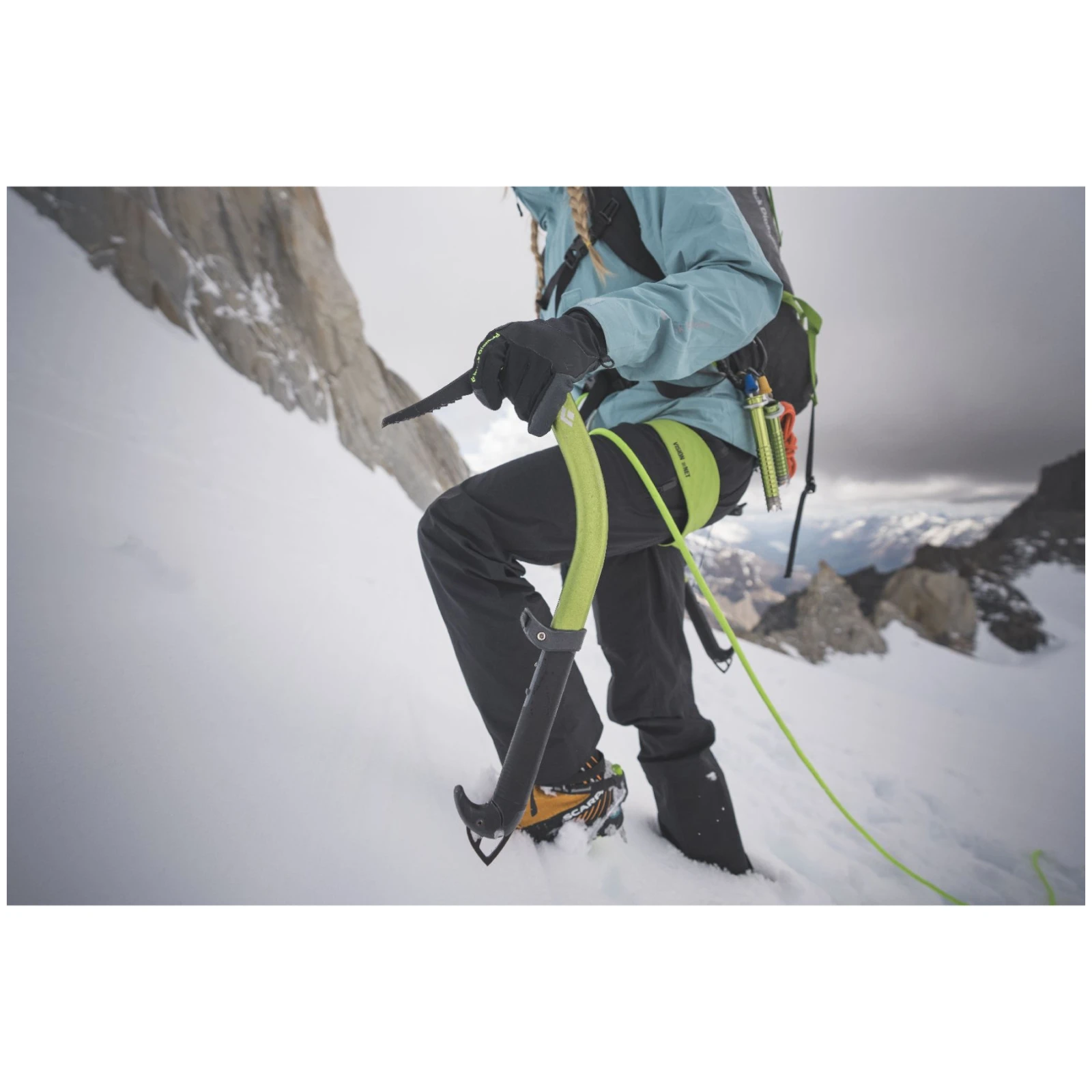 Główną zaletą jest jego wytrzymałość. Hydraulicznie profilowane stylisko jest lekkie, przy jednoczesnym zachowaniu maksymalnej wytrzymałości i sztywności. Dzięki zakrzywieniu i kątowi natarcia czekan jest bardziej sterowny na różnego rodzaju śniegu i lodzie. Rękojeść i głowica wykonane są z miękkiego, przyczepnego materiału dla lepszego chwytu.