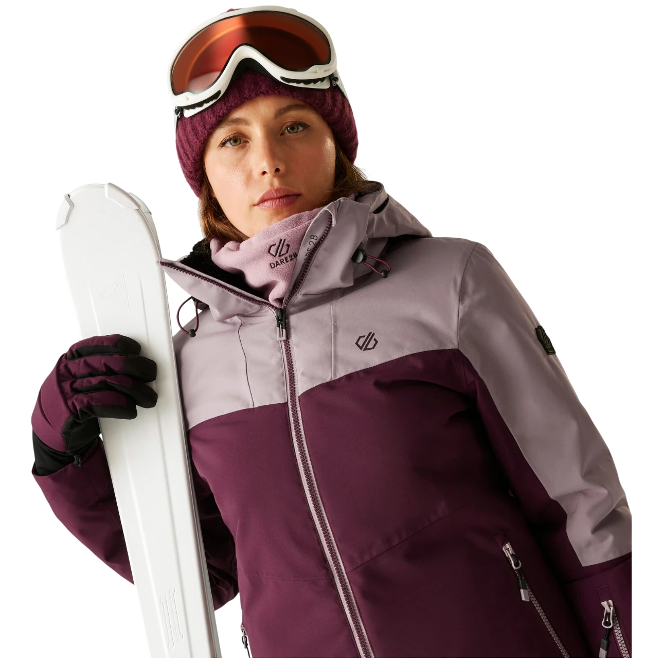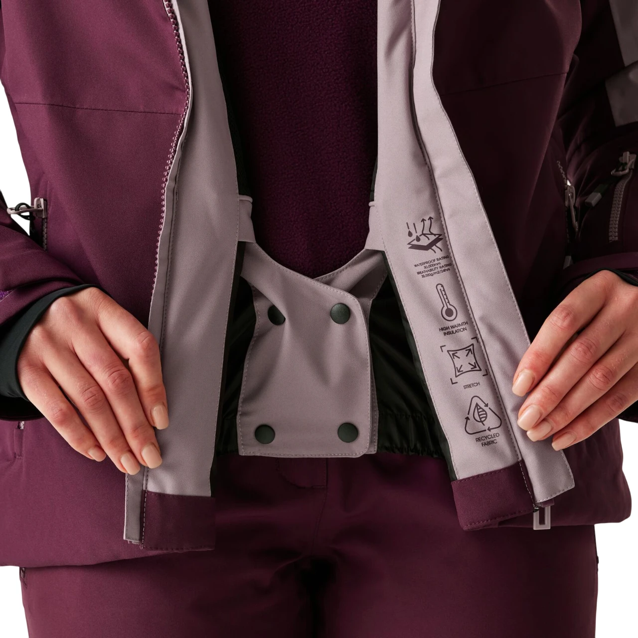 Kurtka oferuje kompletne elementy narciarskie, w tym kieszeń na karnet narciarski i stały snowskirt z silikonowym uchwytem. Wewnętrzna siatkowa kieszeń ze ściereczką do okularów umożliwia bezpieczne i praktyczne przechowywanie sprzętu.