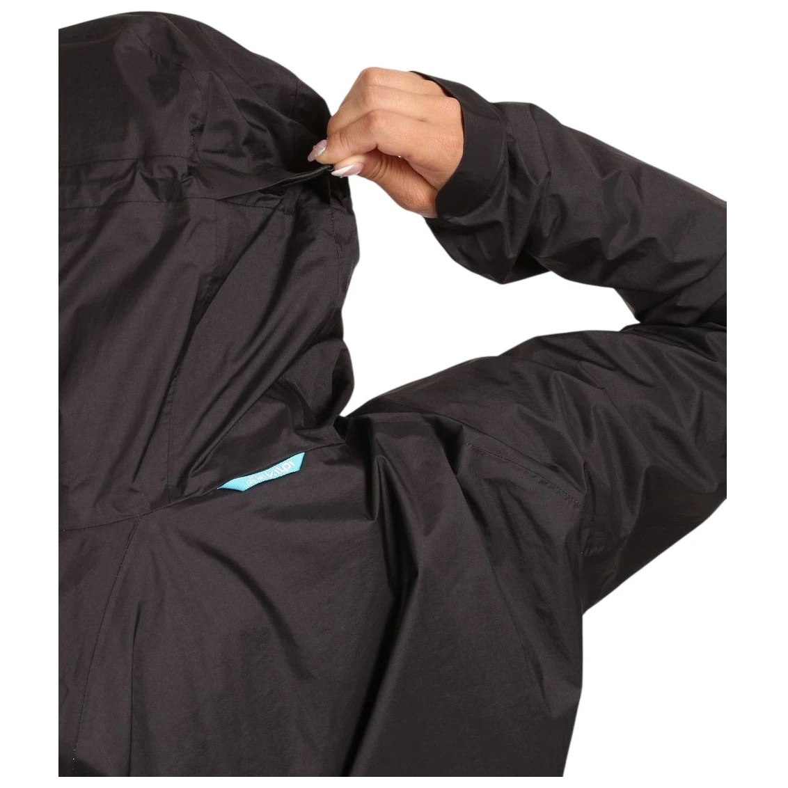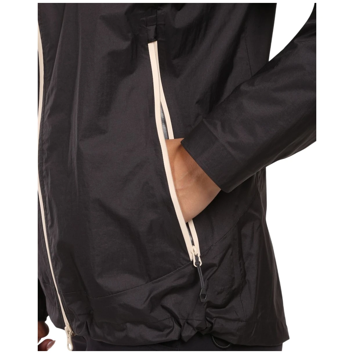 Obszerny kaptur ze sznurkiem chroni przed wiatrem i można go łatwo przymocować do kasku. Kurtka ma sznurek ściągający u dołu i praktyczny brelok na klucze wewnątrz kieszeni. Dzięki luźniejszemu krojowi z wyprofilowanych części kurtka dobrze dopasowuje się do ciała i nie ogranicza ruchów. Aby zachować funkcjonalność i trwałość odzieży membranowej, zalecamy przestrzeganie instrukcji prania i pielęgnacji podanych na metce.