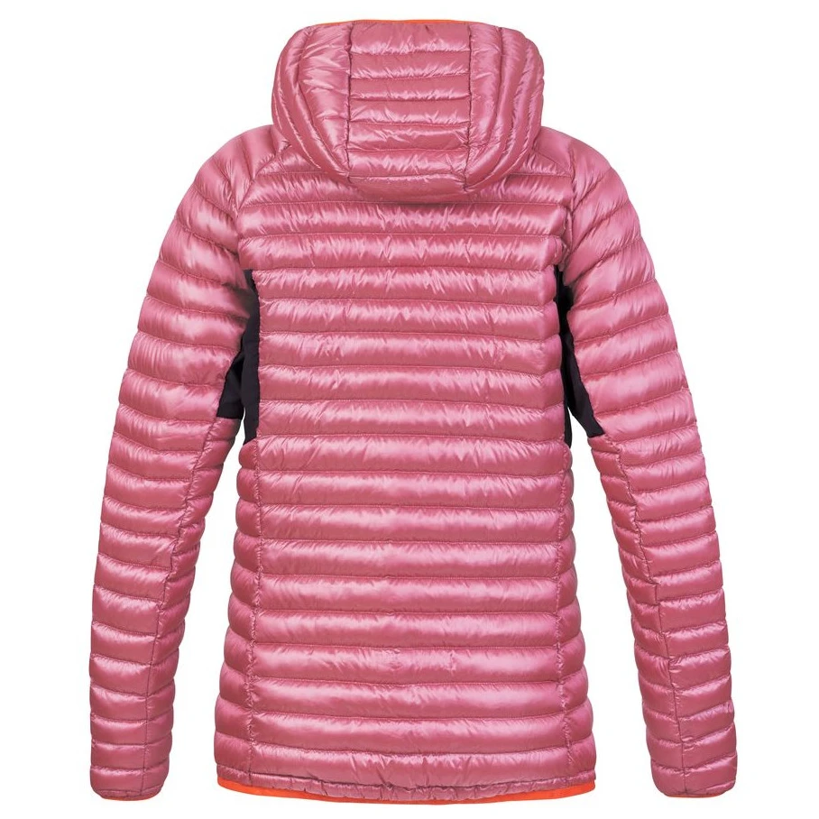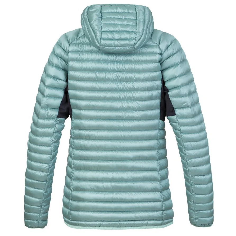 Damska, lekka kurtka puchowa Hannah Mantis Hoody z powłoką materiału zapobiegającą nasiąkaniu. Elastyczne panele pod pachami umożliwiają swobodę ruchów i komfort noszenia. Technologia komorowego wypełnienia zawiera wysokiej jakości kaczy puch w proporcji 80/20 o sprężystości 750 CUIN. Pierze kacze pochodzi z certyfikowanych farm i jest przetwarzane w sposób przyjazny dla środowiska. Kurtka zapewnia doskonały komfort cieplny w połączeniu z niską wagą i pakownością do dołączonego opakowania transportowego.