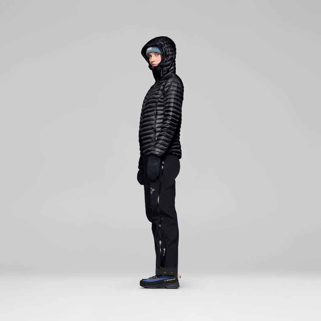 Kurtka jest wykonana z nylonu pochodzącego z recyklingu 10D o gramaturze 28 g/m² i jest wykończona DWR niezawierającym PFC dla zwiększenia wodoodporności. Izolacja jest wykonana z gęsiego puchu o sprężystości 800+ FP (90/10 puch gęsi/pierze gęsie), co zapewnia doskonały komfort termiczny przy minimalnej wadze.