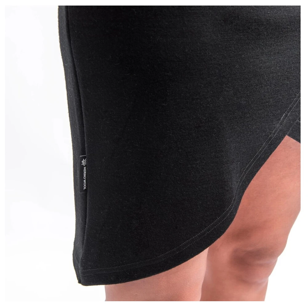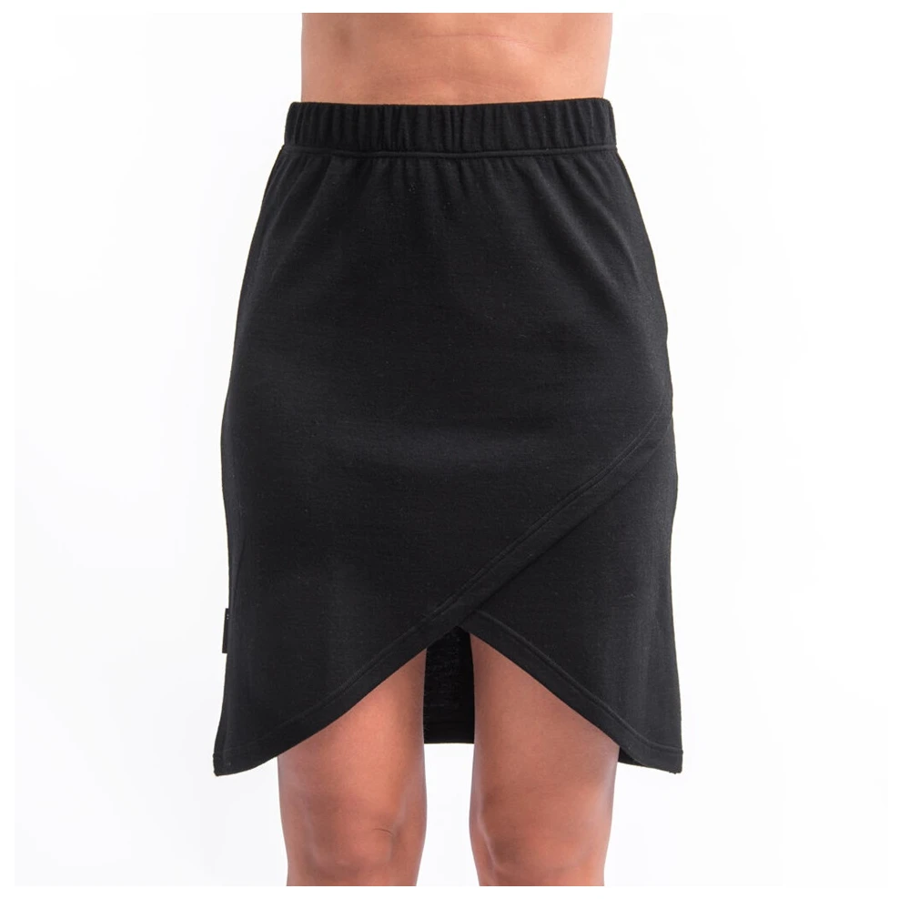 Dwuwarstwowy materiał łączy w sobie delikatną wełnę merino z Nowej Zelandii z poliamidowym jedwabiem. Oddychająca wełna merino zapewnia naturalną termoregulację – ogrzewa w mrozy, a jednocześnie skutecznie odprowadza wilgoć podczas dużego wysiłku. Dzięki zawartości lanoliny ma właściwości antybakteryjne, dzięki czemu spódnica pozostaje świeża nawet podczas dłuższego użytkowania. Poliamidowy jedwab nadaje dzianinie wytrzymałość, elastyczność i stabilność kształtu, co wydłuża jej żywotność i zwiększa komfort ruchów.