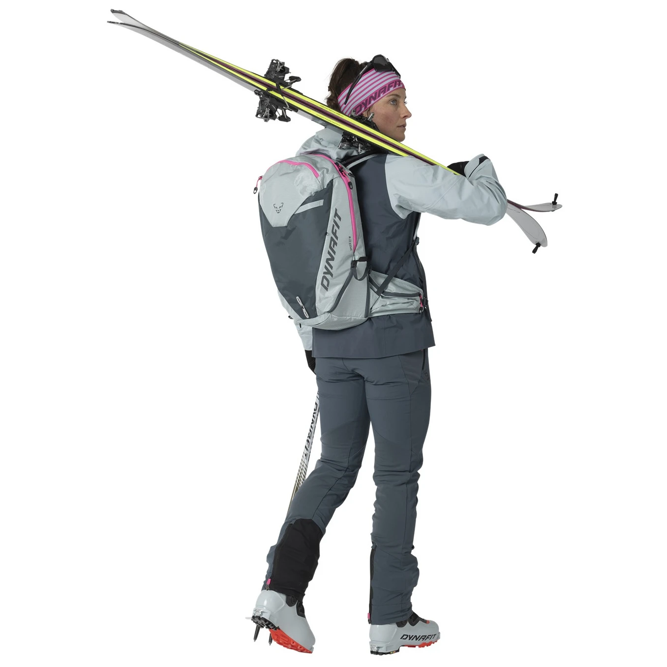 Plecak damski Speed 22 Backpack W marki Dynafit ma przemyślaną organizację z dużą komorą główną i oddzielną przegrodą na raki, która chroni Twój sprzęt, utrzymuje porządek i zapewnia szybki dostęp.Praktyczny uchwyt na narty umożliwia szybkie przymocowanie nart podczas pakowania butów. Oddychający, anatomiczny system nośny, z długością części tylnej dopasowaną do potrzeb kobiet, oferuje wysoki poziom komfortu. Materiał odporny na ścieranie zapewnia niezbędną wytrzymałość podczas kontaktu ze skałami.