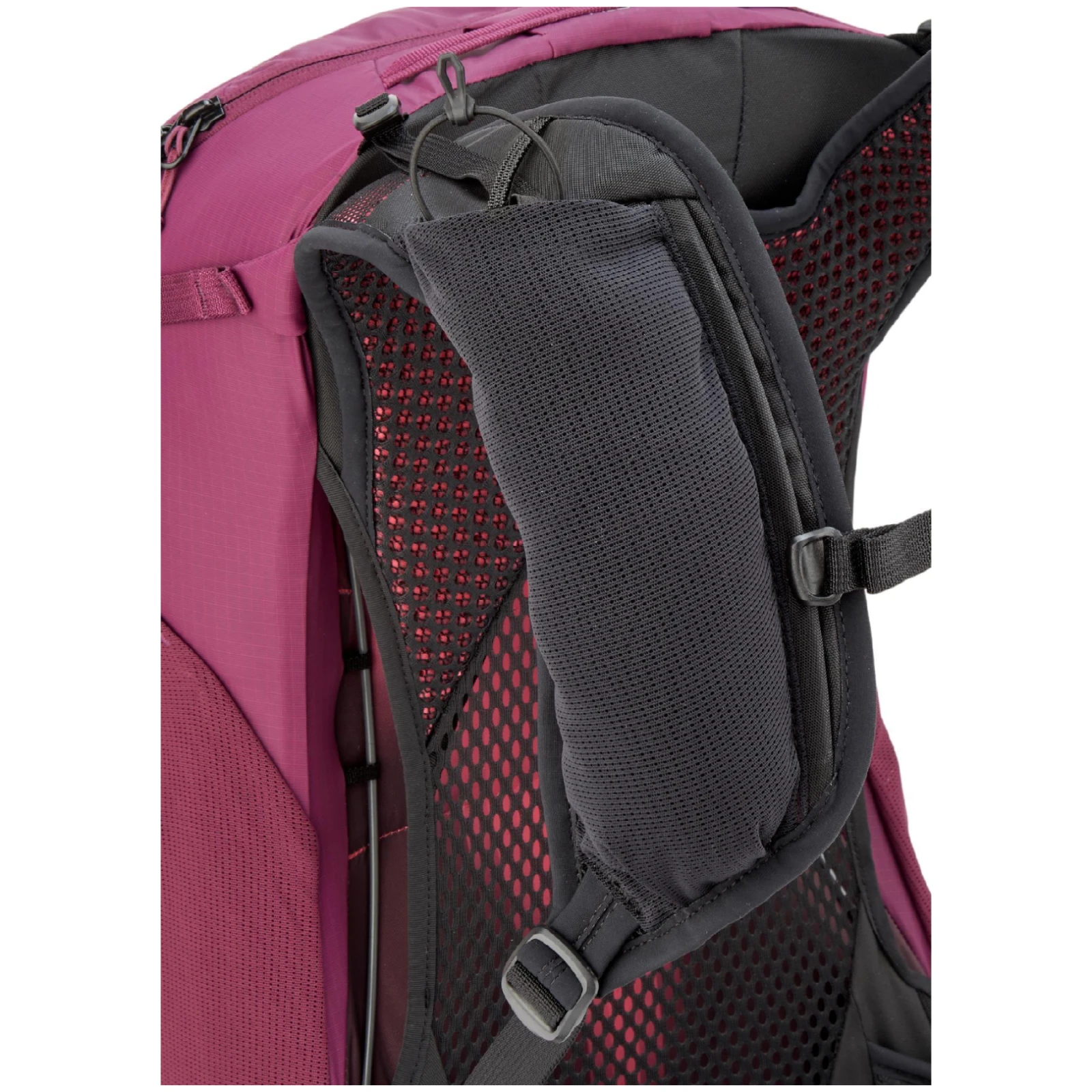 Maksymalny komfort zapewnia system nośny AEROFIT™ z zawieszoną siatką, który umożliwia przepływ powietrza między plecakiem a plecami i pomaga ograniczyć pocenie się podczas wędrówek w cieple. Perforowane szelki zwiększają wentylację, a jednocześnie oferują praktyczną kieszeń na pasie piersiowym lub miejsce na soft flask.