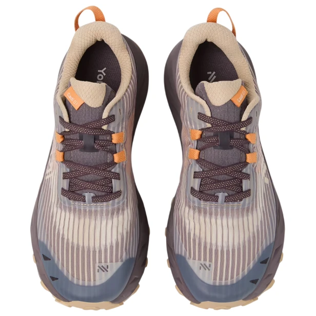 Za pewne odbicie odpowiada podeszwa Vibram® Megagrip, która zapewnia przewidywalną przyczepność na suchym szlaku, mokrej skale i sypkim podłożu. 4-milimetrowe wypustki są zoptymalizowane pod kątem mniej technicznego terenu, dzięki czemu oferują stabilność bez nadmiernie agresywnego charakteru. Podeszwa środkowa o wysokości 29 mm w przedniej części i 35 mm w pięcie amortyzuje wstrząsy i jednocześnie oddaje energię, podczas gdy drop 6 mm wspiera efektywny i naturalny krok biegowy przy różnych tempach.