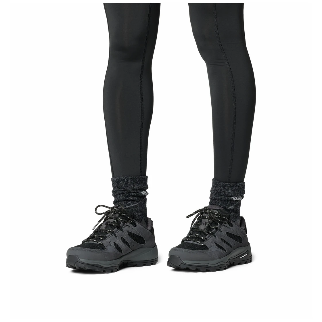Damskie buty trekkingowe Columbia Redmond™ IV Low Waterproof są przeznaczone dla miłośniczek turystyki, które szukają tradycyjnego niskiego modelu zapewniającego wygodę, ochronę i pewność podczas całodziennych wypraw na łono natury. Tworzywo łączy oddychającą siateczkę i wytrzymałe skórzane panele dla idealnej równowagi wentylacji i stabilności, uzupełnione gumową ochroną czubka przed uderzeniami i uszkodzeniami. Metalowe haczyki i oczka zapewniają mocne sznurowanie i stabilne trzymanie stopy.