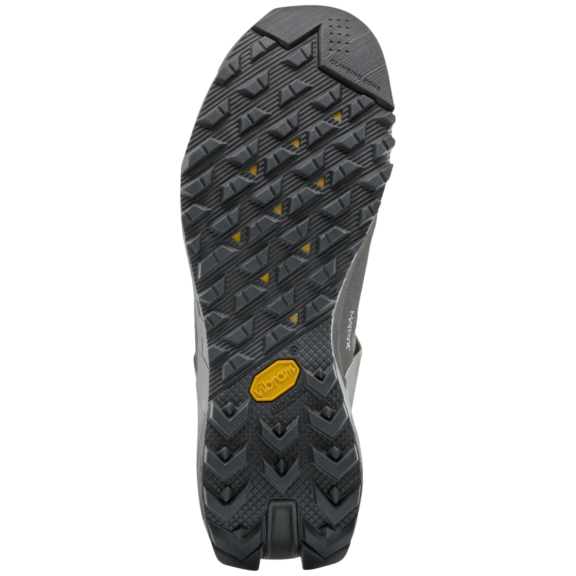 Buty mają bezszwową cholewkę wykonaną z Matryx® wzmocnionego Kevlarem®, zapewniając połączenie komfortu chodzenia i precyzji wspinaczki. Dzięki systemowi 3F buty te otulają kostkę i zewnętrzną część stopy, zapewniając bezpieczne dopasowanie, wsparcie i swobodę ruchów. Podeszwa zewnętrzna Vibram® Megagrip zapewnia niezawodną przyczepność i trakcję na różnych rodzajach terenu.