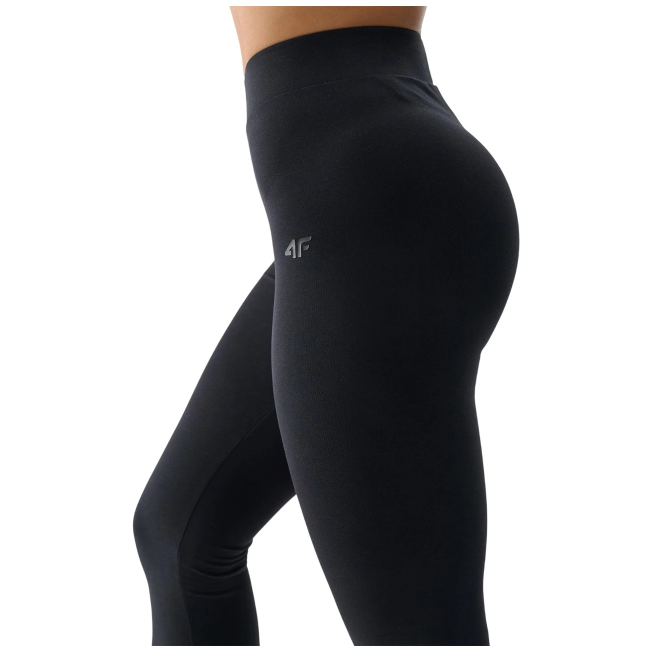 Damskie legginsy Tights Cas F195 4F z wysokim stanem i krojem slim zapewniają komfort na co dzień. Dzięki bawełnie z dodatkiem elastanu są przyjemne w noszeniu, dobrze trzymają kształt i sięgają aż do kostek.