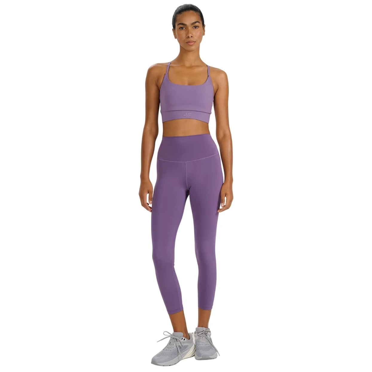 Damskie legginsy Tights Fnk F361 4F z wysokim stanem, o długości 7/8 i z technologią 4FDry są wykonane z poliestru z recyklingu i elastanu.