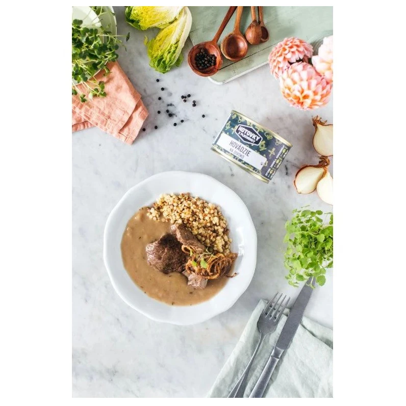 Hotovky z plechovky Pieczeń wołowa 400 g – idealny towarzysz podczas Twoich przygód na łonie natury.