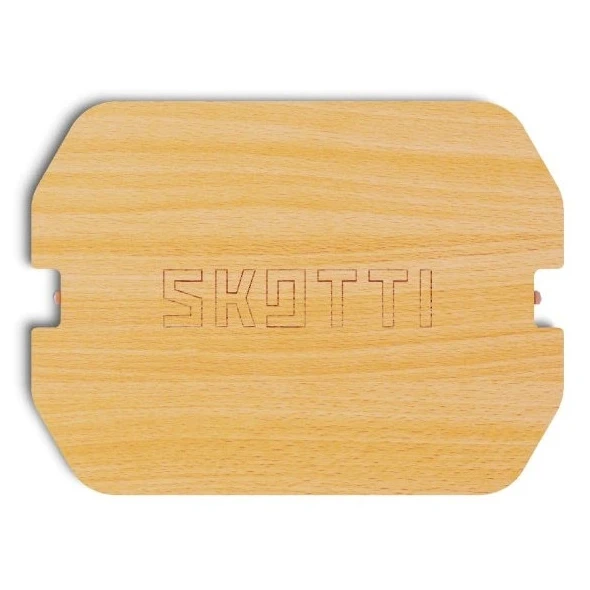 Deska SKOTTI Deska to praktyczne uzupełnienie dla wszystkich, którzy korzystają z grilli i skrzyń SKOTTI w podróży lub podczas gotowania na zewnątrz. Dzięki prostemu zatrzaśnięciu na górnej części skrzyni SKOTTI powstaje stabilna powierzchnia do krojenia. Deska jest wykonana z wysokiej jakości drewna kauczukowego, które zapewnia bezpieczne i solidne miejsce do krojenia lub serwowania.