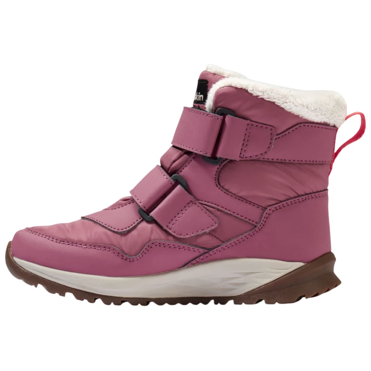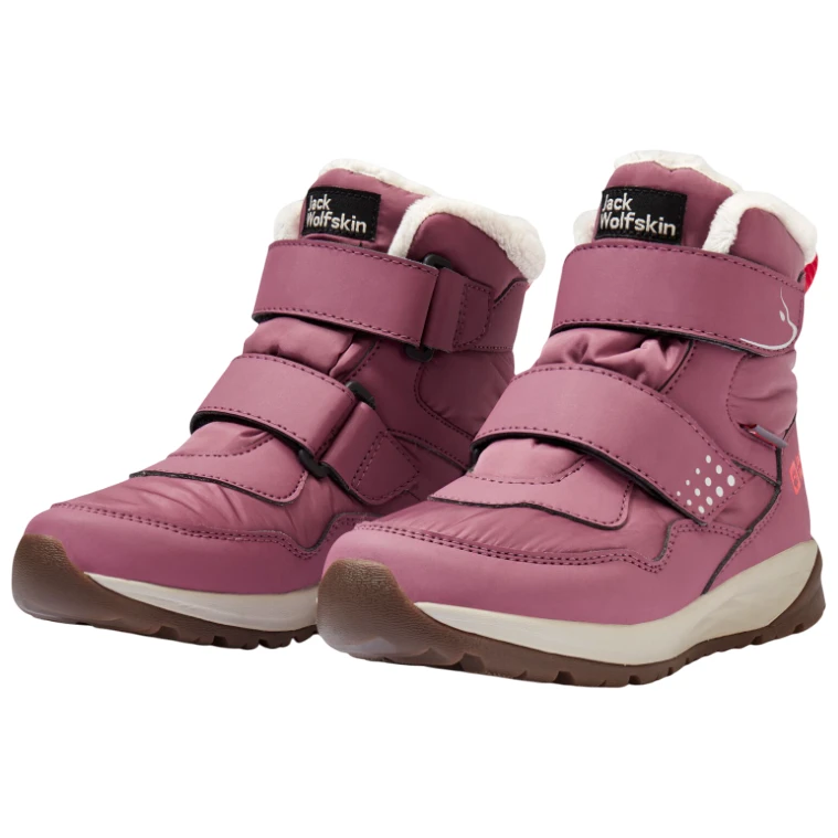 Buty zimowe dziecięce Polar Bear-G Texapore Mid Vc K marki Jack Wolfskin to idealny wybór na chłodne dni, który zachwyca praktycznym i szybkim zakładaniem dzięki podwójnemu zapięciu na rzep i wsuwanej szlufce. Tworzywo jest wykonane z lekkiej tkaniny i materiałów syntetycznych z wodoodporną, ale oddychającą membraną Texapore. Dzięki temu można chodzić po kałużach bez zamoczenia stóp. Dla zapewnienia dodatkowego ciepła, kurtka posiada podszewkę z polaru Texawarm.