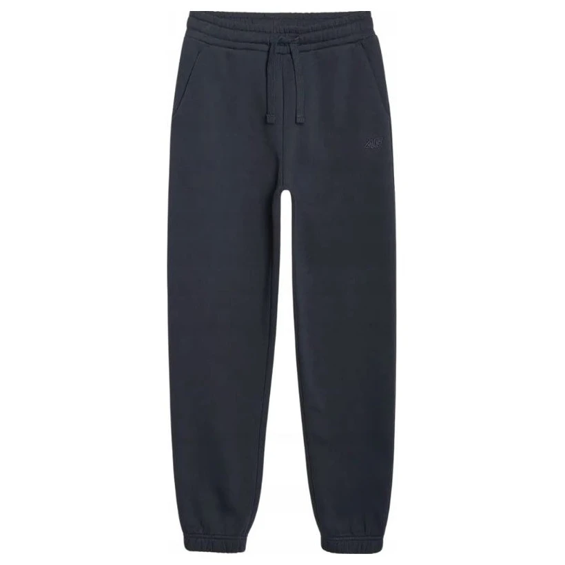 Dziecięce spodnie dresowe 4F Trousers Cas M1510 z miękkiej, drapanej dzianiny dresowej z elastycznym pasem i nogawkami wykończonymi ściągaczem zapewniają wygodę i swobodę ruchów podczas codziennych aktywności.