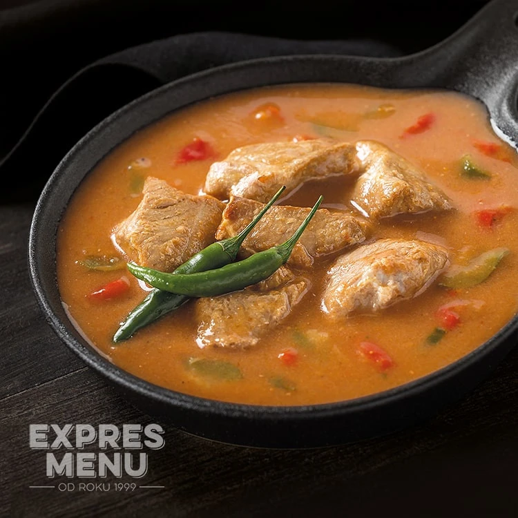 Dla tych, którzy mają bardziej żelazny język, Expres menu ugotował, a następnie wysterylizował bitą śmietanę Kato. Danie to zawiera udziec wieprzowy z ogórkami, kaparami, ostrą papryką i cebulą. Do tego dania można ugotować ryż i mamy gotowy pełnowartościowy główny posiłek.