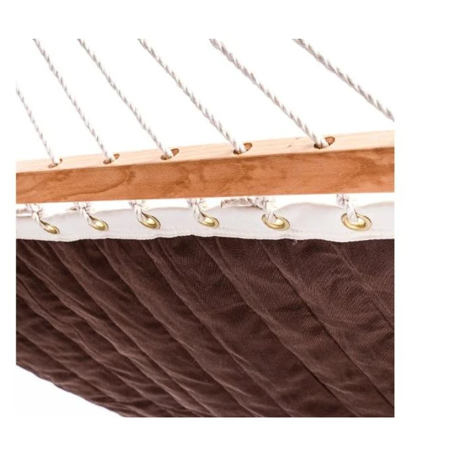 Jeden z najpopularniejszych hamaków Exclusive od Hamak. eu przeznaczony jest dla dwóch osób o łącznej wadze do 205 kg. Przyjemny, oddychający materiał z wyściółką jest przeszyty wzdłuż, co zwiększa miękkość siatki i komfort podczas odpoczynku. Otwarty kształt siatki zapewniają dwa drewniane wzmocnienia. Piękny dodatek do tarasu lub basenu, w którym można marzyć.