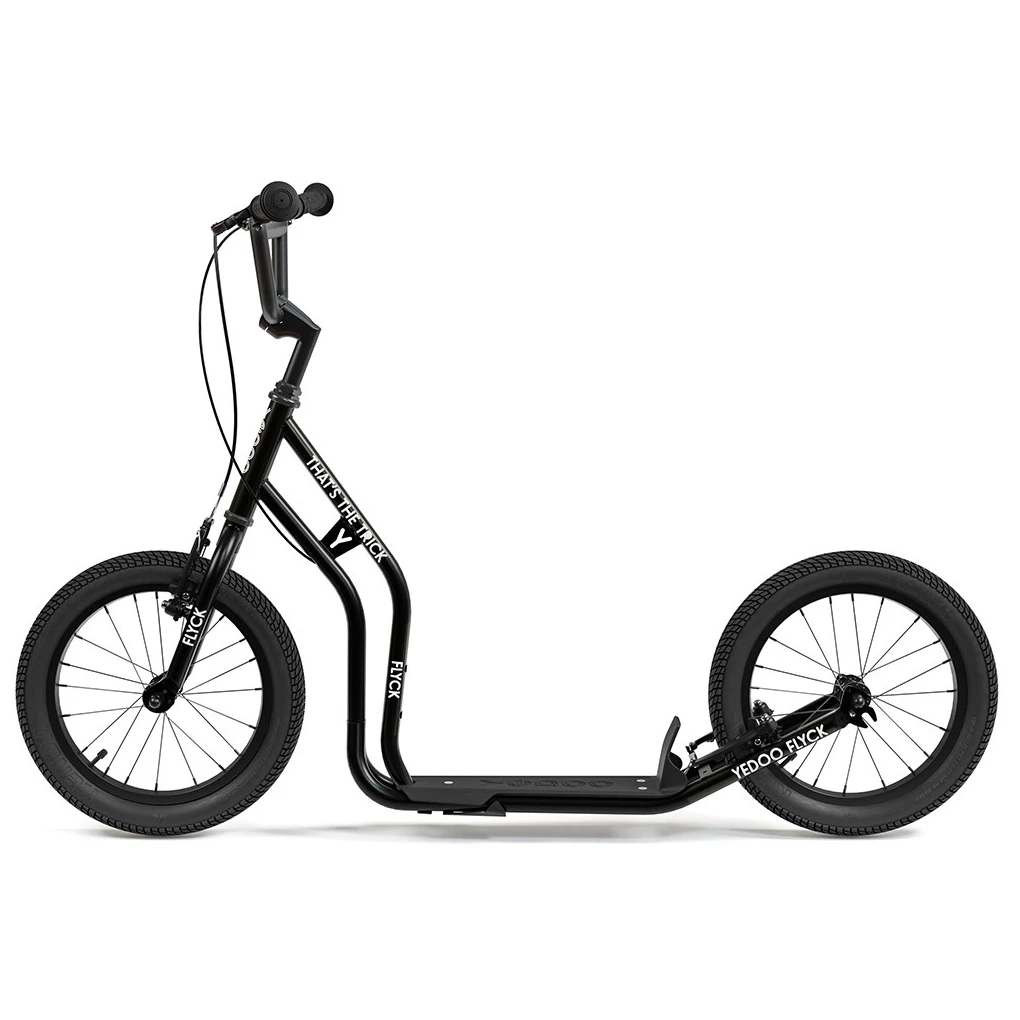 Flyck Y40 zawiera szereg praktycznych udogodnień – antypoślizgowy podest dla bezpiecznej jazdy na mokro, składaną nóżkę dla łatwego parkowania, tylną linkę hamulcową prowadzoną w ramie dla większego bezpieczeństwa oraz regulowaną kierownicę, która dzięki szerokiemu zakresowi umożliwia dostosowanie wysokości do dziecka nawet podczas wzrostu przez kilka lat.