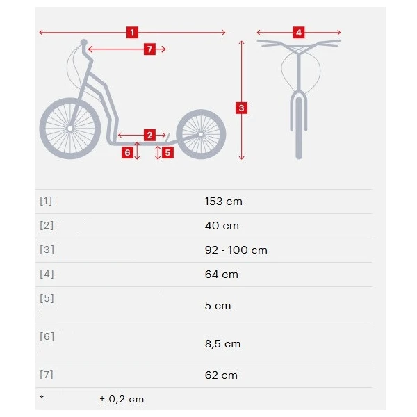 Dwupozycyjny tylny widelec, który umożliwia regulację wysokości podnóżków, oszczędza stojącą nogę i zwiększa przyjemność z jazdy oraz przebieg. Ergonomicznie ukształtowane uchwyty o przyjemnej powierzchni dobrze leżą w dłoni. Hulajnoga jest gotowy do montażu błotników i dwóch uchwytów na butelki, które można dokupić podobnie jak zestaw mushera, fotelik dziecięcy, torbę, uchwyt na telefon komórkowy, światło, dzwonek.