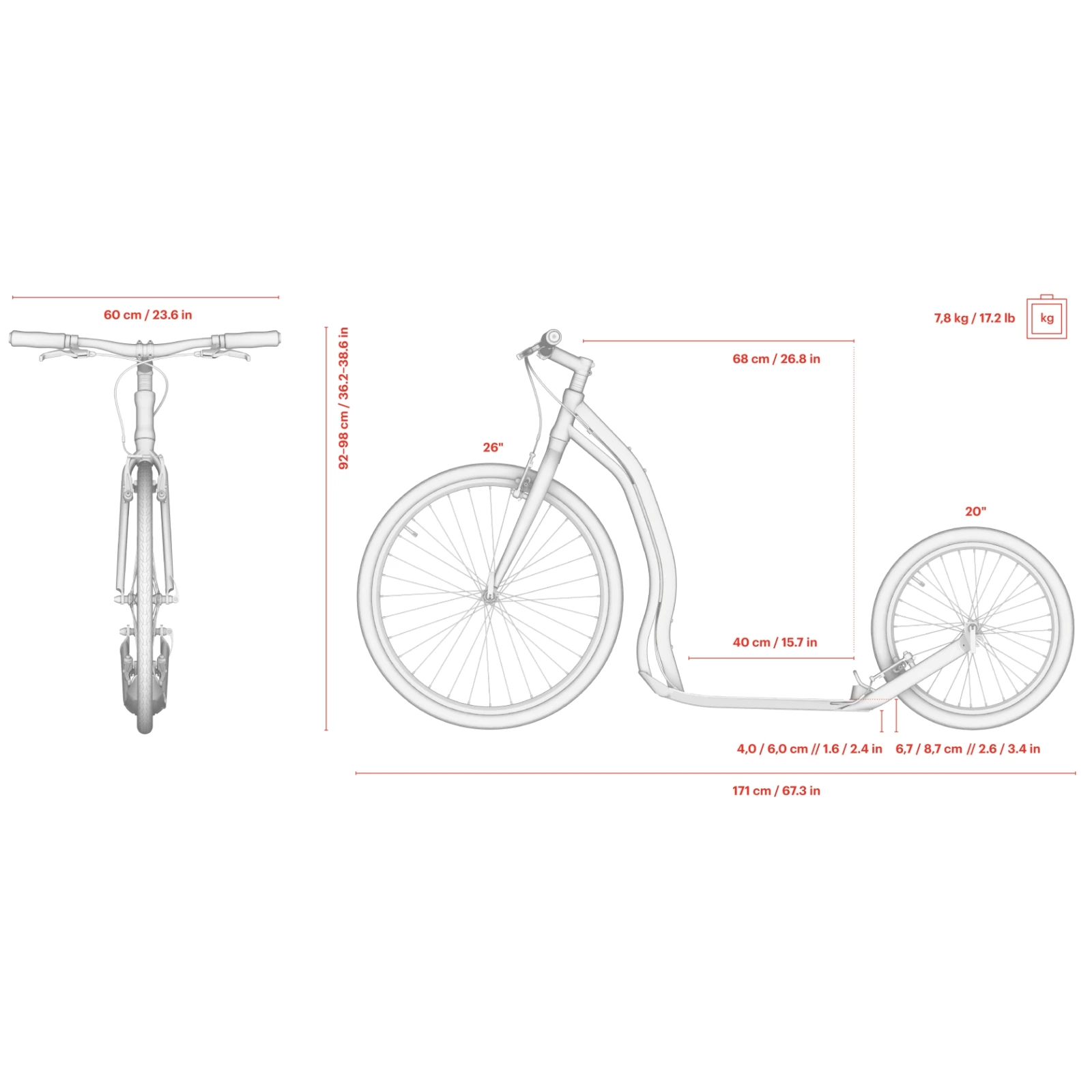 Maksymalny udźwig 130 kg. Niski podnóżek i jego minimalna grubość oszczędzają stojącą nogę, zwiększając przyjemność z jazdy i liczbę przejechanych kilometrów. Dzięki dźwigniom szybkiego zwalniania z przodu i z tyłu można zdjąć oba koła w kilka sekund, łatwo transportować hulajnogę w samochodzie lub przechowywać ją w domu.