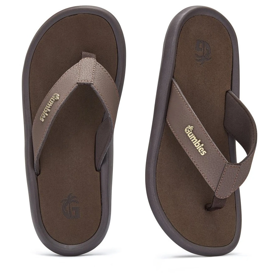 Japonki Gumbies Noosa Brown wyróżniają się eleganckim, metalowym logo na pasku. Te japonki są idealne na letnie dni, łącząc w sobie komfort z modnym wyglądem. Dzięki zastosowaniu ekologicznych materiałów są właściwym wyborem dla tych, którym zależy na naszej planecie.