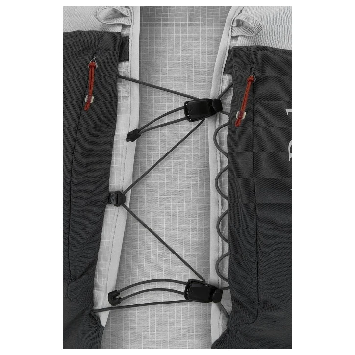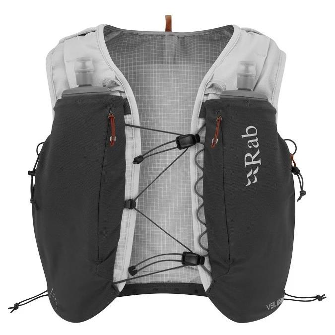 Kamizelka biegowa Veil 12 marki Rab ma lekką konstrukcję z oddychającą siateczką i dużą liczbę kieszeni do przechowywania całego sprzętu niezbędnego do biegania. Kamizelka jest kompatybilna z bukłakiem na wodę (który nie jest dołączony do zestawu) i zawiera 2 lekkie bidony o pojemności 500 ml.