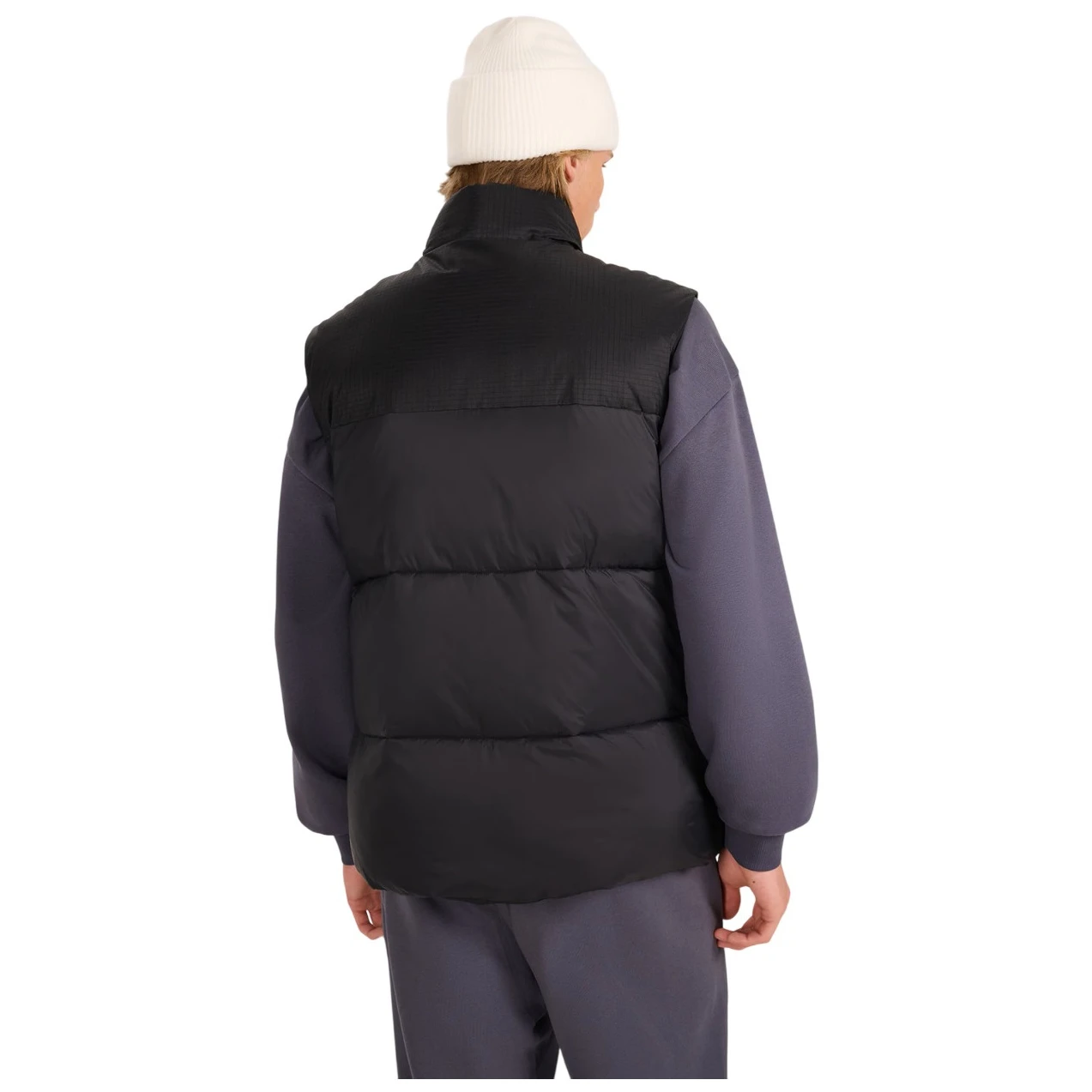 Kamizelka ma regularny krój i standardową długość do bioder, co zapewnia wygodę noszenia i swobodę ruchów podczas codziennych i sportowych aktywności. Klasyczne, poziome przeszycia równomiernie rozkładają wypełnienie i dodają kamizelce estetycznego wyglądu.