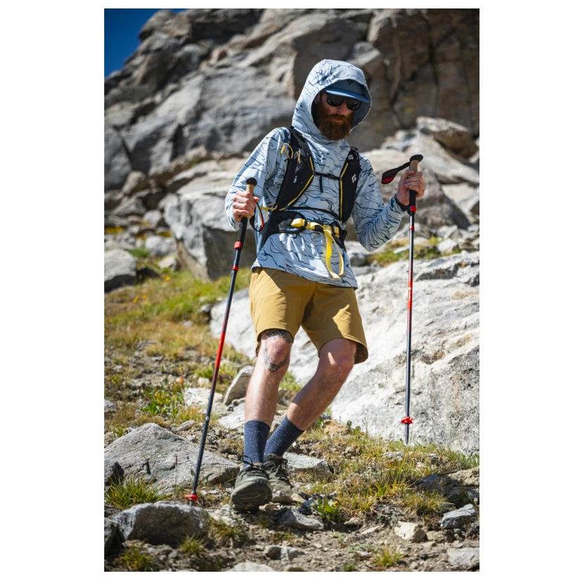 Ergonomiczny uchwyt wykonany z korka z przedłużeniem z pianki Bloom z alg i oddychająca pętla z materiału air mesh zapewniają komfort nawet podczas długich wędrówek. Kije dostępne są w długościach 110–125 cm i 120–135 cm, długość po złożeniu wynosi 36 cm lub 39 cm. Masa pary wynosi około 245 g lub 251 g w zależności od rozmiaru.