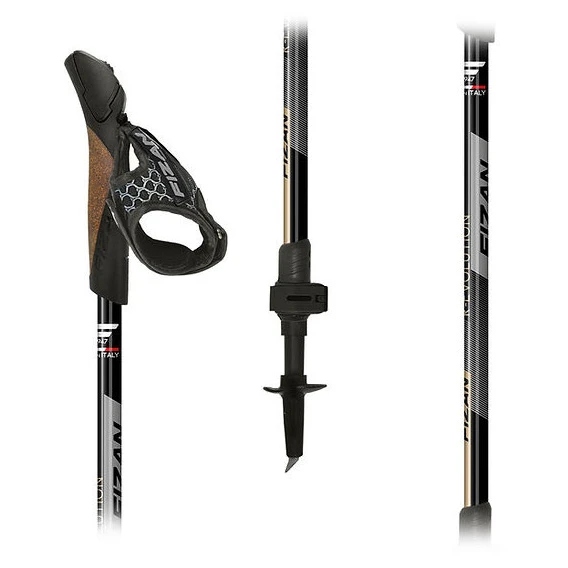 Kije do Nordic walking Fizan R-evolution są wykonane z wytrzymałego aluminium 7075 i składają się z trzech sekcji (16/14/12 mm), które można łatwo regulować za pomocą wewnętrznego ekspandera i aluminiowego dźwigniowego systemu blokowania.